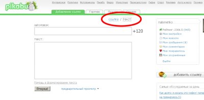 Нажимаешь "добавить ссылку", и на появившейся странице выбираешь тип контента (ссылка или текст):