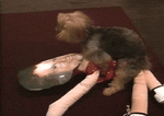 А вот мой Тузик мутузит мою Зину. Не могу никак сфоткать, как выложу на ковёр, так и начинает...