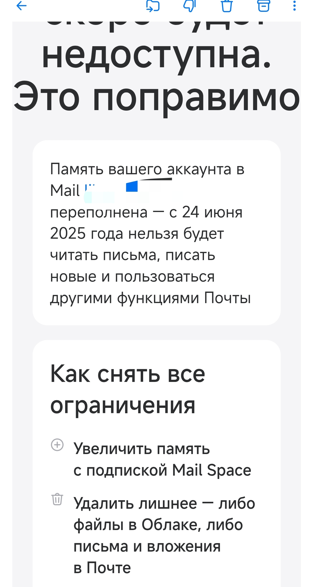 Теперь если у меня переполнен диск, котрый раньше был 100гб навсегда, а теперь 20гб, эти гомосексуалисты хотят отключить мне почту...