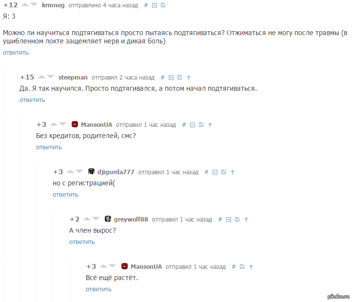 10 Gigantlife1 я вижу цель для мотивации ! 10 лет назад Пикабу всегда поднимет настроение :3 Комментарии Подтягивания