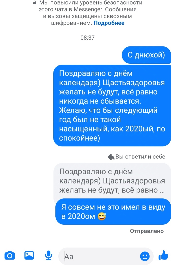 2 ArtemedoN Я вовсе не это имел ввиду 1 год назад Поздравил подругу с днём рождения и увидел своё предыдущее сообщение 😰 [моё] Истории из жизни День рождения Поздравление Календарь Ещё 0