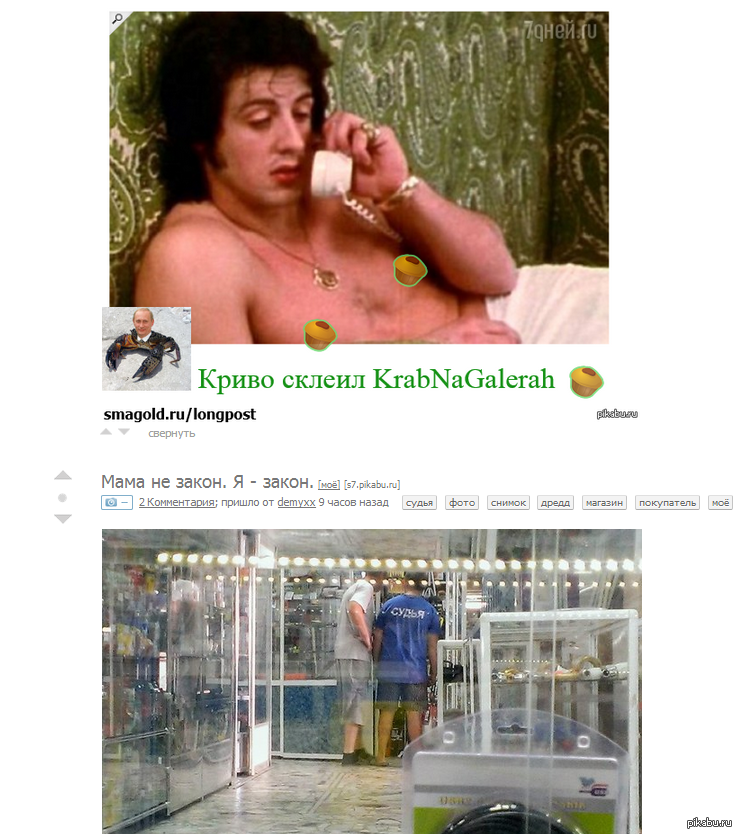 Anestiy Я Закон! 11 лет назад Совпало http://pikabu.ru/story/_2546524 и http://pikabu.ru/story/_2546525 Судья Дредд @krabnagalerah @demyxx