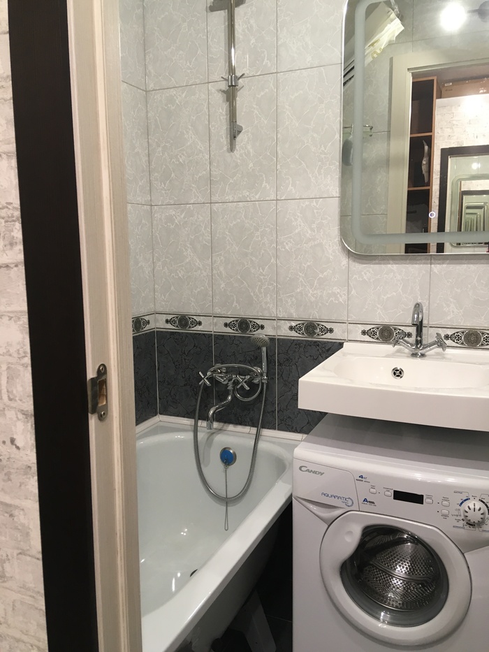 Ванную комнату мне делала бригада, гнилые полы и радиаторы тоже поменяли, кстати на кухне где стол, там был радиатор, я его перенесла на стену к окну. А дальше всё пришлось делать самой.