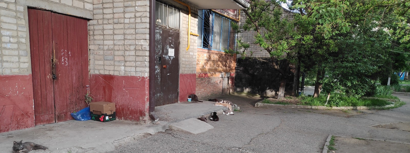 Всем привет. Иду сегодня в магазин мимо дома(у нас они зовутся свечка. Один подъезд и 9 этажей) в котором сердобольная бабуля прикармливание котов и голубей.
