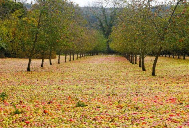 Яблочный сад после урагана в Ирландии