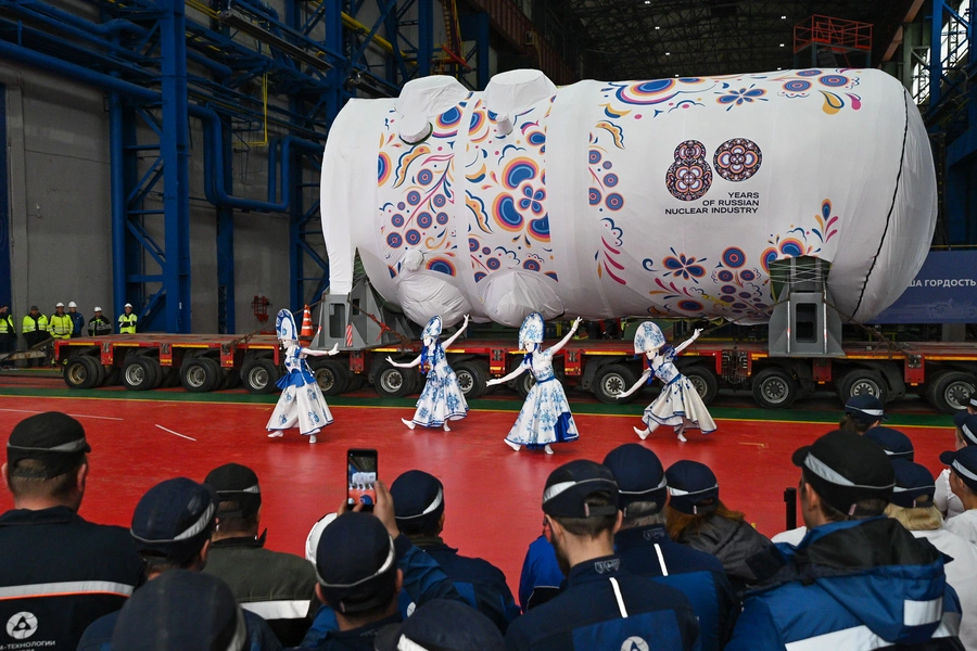 «Росатом» отгрузил два корпуса реакторов ВВЭР-1200 — самые современные реакторы поколения «3+». Чтобы подчеркнуть культурный символ России, защитные чехлы на них раскрасили под традиционные росписи гжель и хохлому.