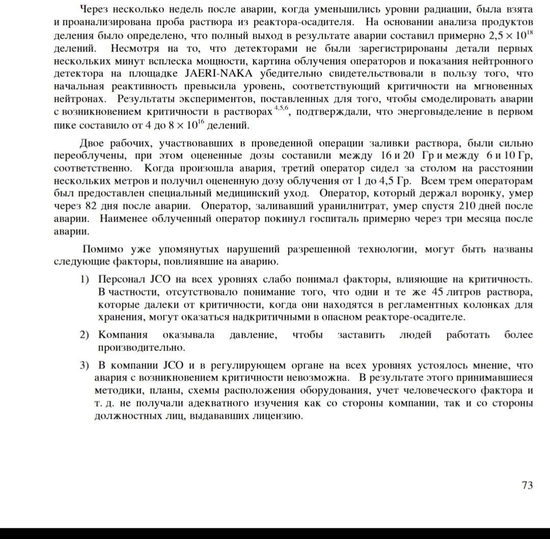 Короче говоря, классическая ситуация для проверяющих любых мастей. Пока петух не клюнул в отожранный филей – на некоторые вещи можно закрывать свои и без того почти закрытые от природы глазёнки. Авось пронесёт. Но главной причиной произошедшего станут вопиющие нарушения ТБ. Загибаем пальцы – операторы, которым было поручено провести процедуру переработки урана, ранее никогда не работали с предоставленным сырьём, получая в своё распоряжение уран с более низкой степенью обогащения, а потому не были знакомы со всеми возможными последствиями.