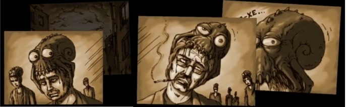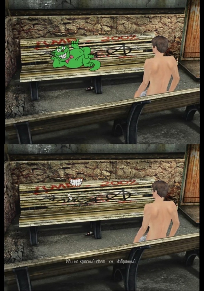 1) В первом варианте, - нейрофашизм и уничтожение мозгов сексистов, медуза на головах людей, как нейрокоммуникация, т.е. массовое отсутствие интима. В игре нейрофашисты называют себя романтиками, подтверждая мои умозаключения, - они выпендриваются ЭКО-зачаточным культом, пытаясь внушить, что могли бы быть сексистами.