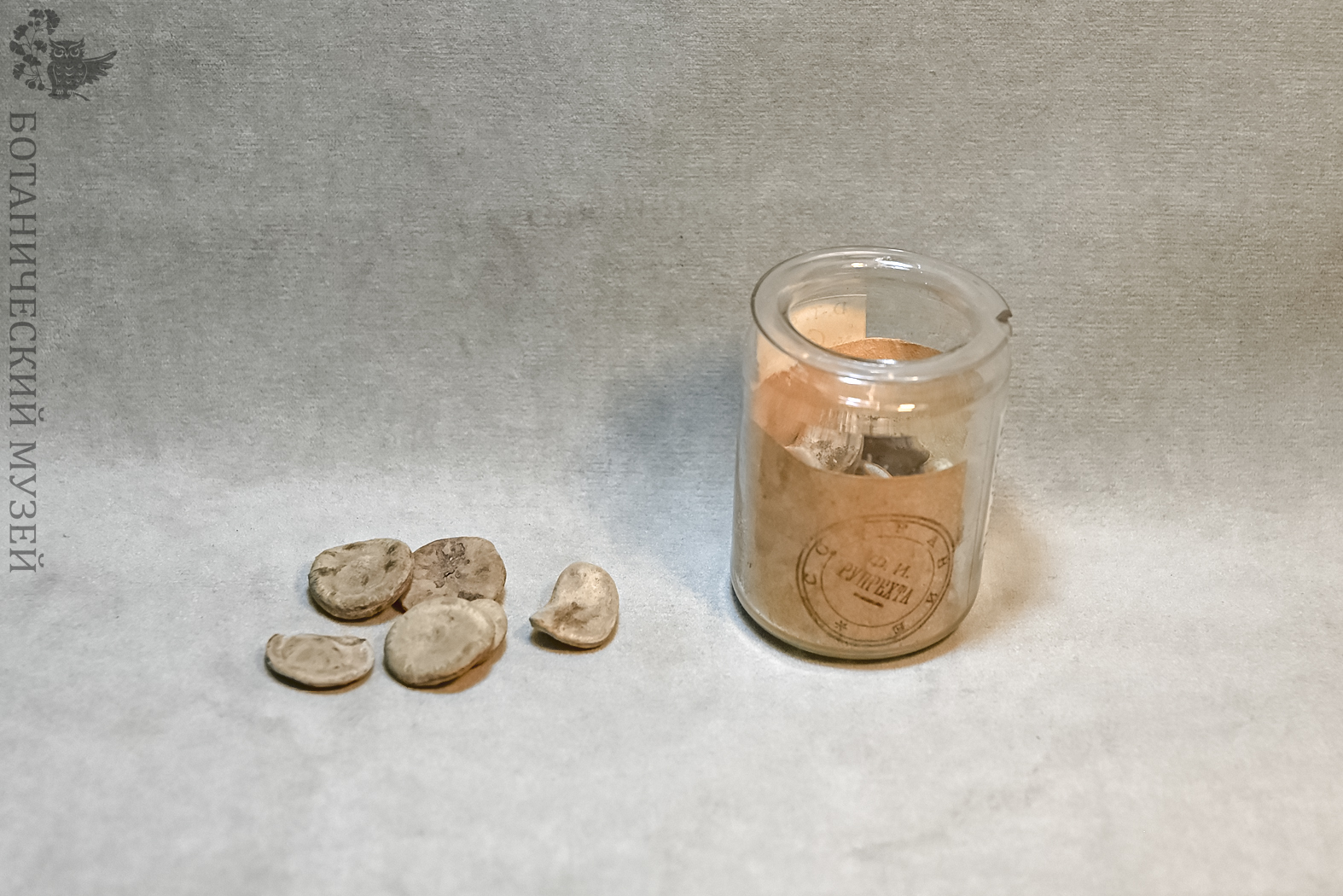 Семена чилибухи иногда называют «квакерские пуговицы». Собрание Ф.И. Рупрехта. Из фондов Ботанического музея БИН РАН.