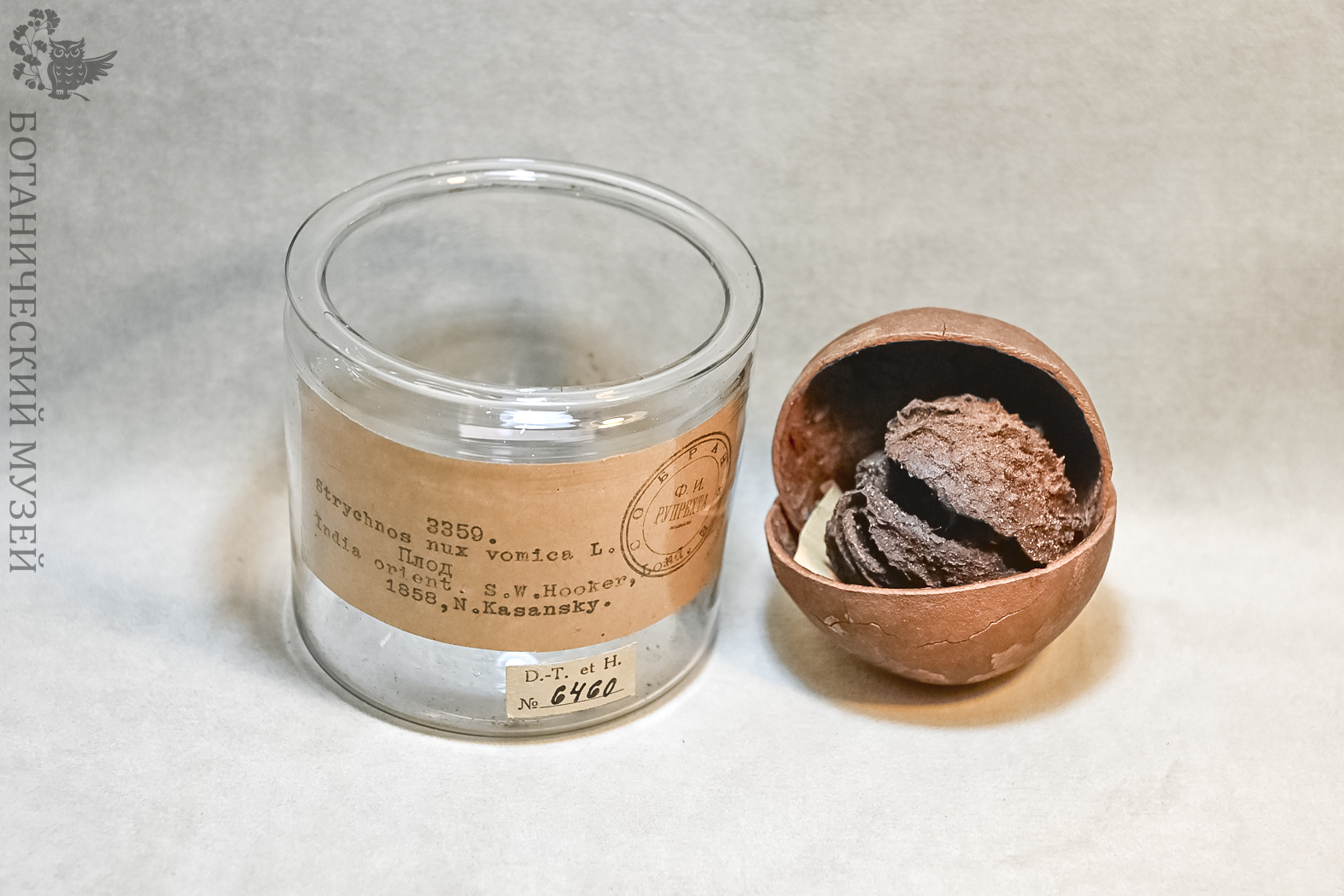 Плод стрихнинового дерева с сердцевиной. Собрание Ф.И.Рупрехта,1858г. Из фондов Ботанического музея БИН РАН.