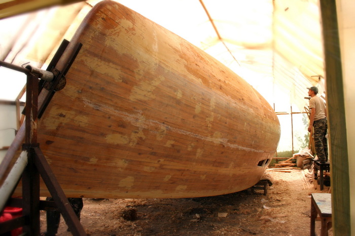 И нашего стартового капитала по расчетам должно было хватить на яхту 11,5 метров длины. Если бы в тот момент мы выбрали размер поменьше, возможно тогда бы строительство не затянулось на пять долгих лет. Недолго думая я начал чертить проект, а через месяц уже начал возводить импровизированный эллинг (что-то похожее на гараж для яхты). По конструкции эллинг, как большая теплица с размерами 6*13м, поэтому вышел довольно бюджетным, около 300$. Яхту мы решили строить деревянной с оклейкой армированным стеклопластиком. Общий бюджет на все материалы составил 30000$, трудовые затраты я не учитывал. В этом видео я показываю процесс оклейки яхты армированным стеклопластиком на эпоксидной основе. А также шпаклевка корпуса и отвечу на вопрос почему мы выбрали моно корпусную яхту, а не катамаран.
