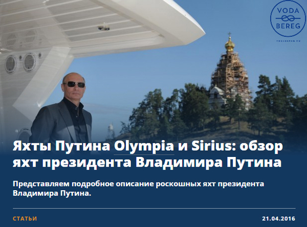 Представляю подробное описание роскошных яхт президента Владимира Путина.