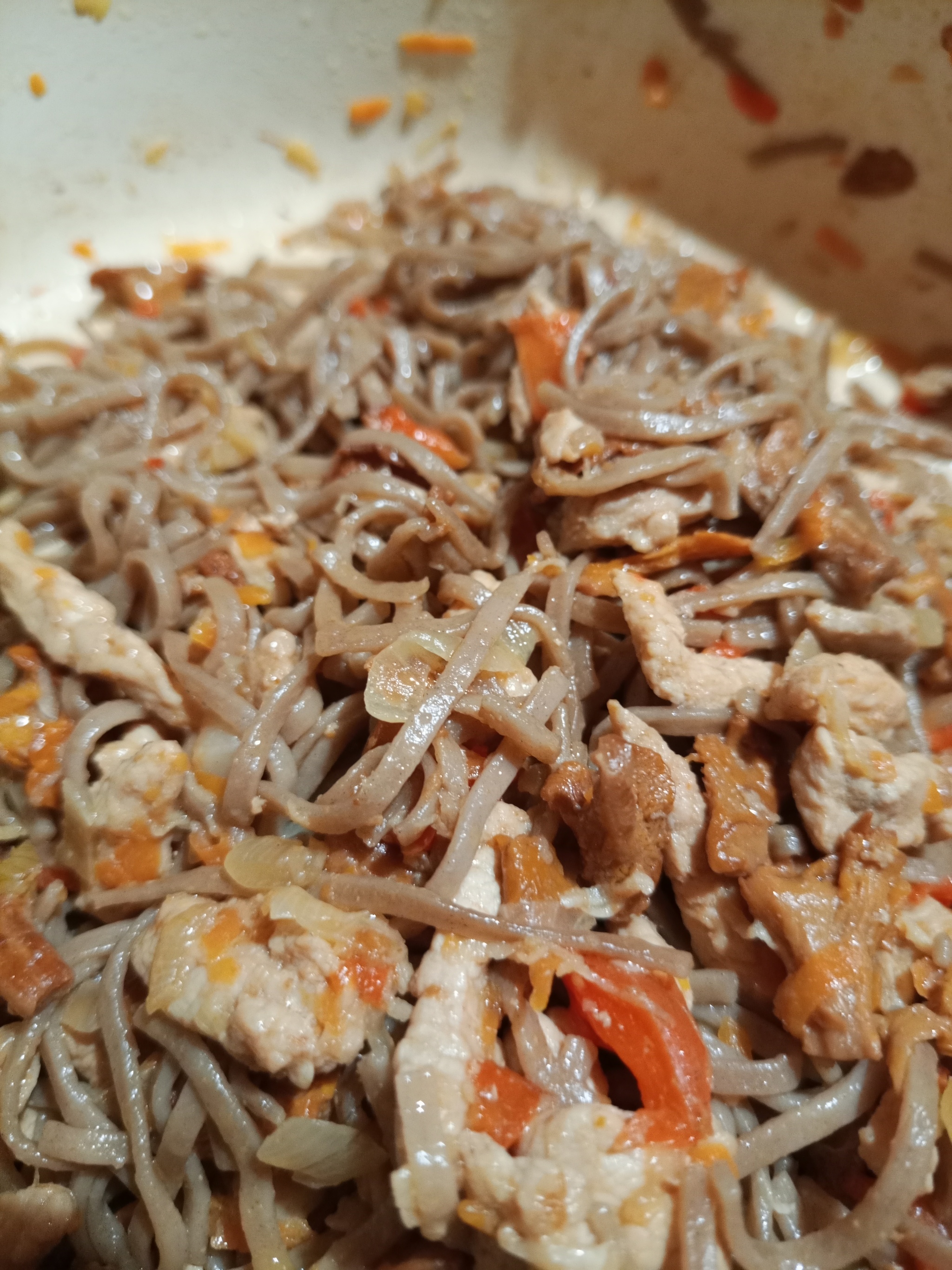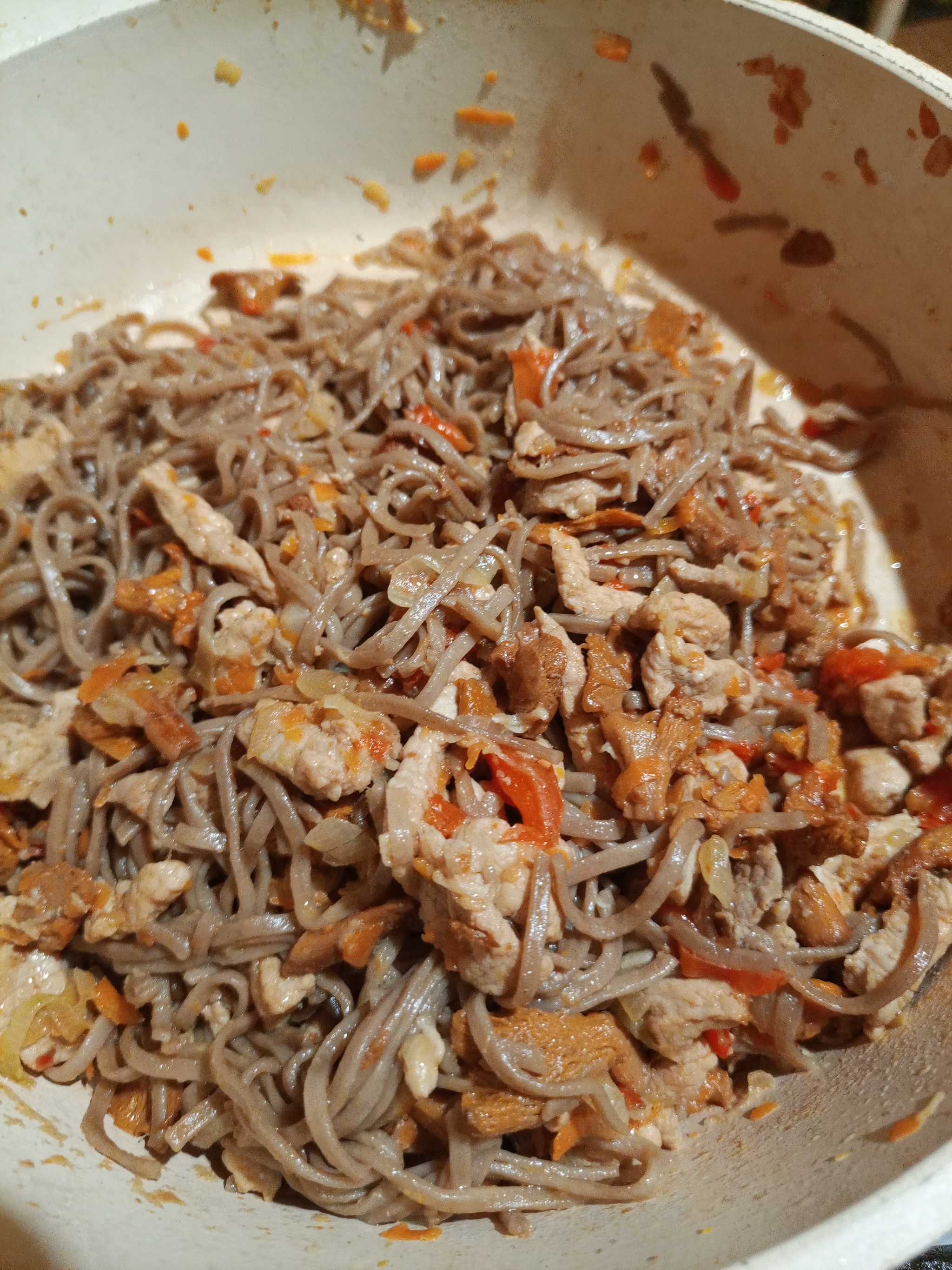 Берем значит собу. Гречневые лапша если по русски. Лук, морковка, перец болгарский, свинина свежая халяль, чеснок тоже самое и соевый соус, тоже халяль. Его же японцы делают, а они в этом толк знают. На каждой почти пачке собы есть зеленый знак, не. Рецепт якисобы.маринуем мясо в чесноке с соевым соусом. Варим лапшу. Альданте к японской лапше применимо? Ну вот не доваривая чуток. Лук на сковороду. Потом морковку. Еще чуть позже перчик. Обжарилось? Растительного масла не забыли. Ой я не сказал. Питом грамм 20-30. Не внутрь. И не алкоголя. Соуса из сои. Тушим немного. Лапша 7 минут и подошла? На дуршлаг остывать. Можете промыть если совесть есть. Мясо!!!! Бегом к овощам закинуть. И все это дело мешать. Мешать надо было с самого начала кстати. А вам не говорили? Когда дойдет свининка(халяль) до готовности кидаем в тару с овощами и мясо собу. Три минутки под крышкой и вуаля! Ебать вы повар! Все плачут и кидаются к вам в ноги. Дамы хотят от вас детей, да и мужики тоже. Вы великолепны. Приятного аппетита!