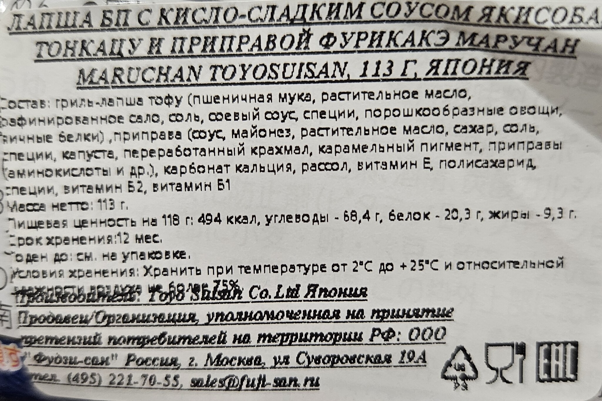 Здравствуйте, дорогие друзья! Спешу приветствовать вас и отчитаться о новом исследовании. В этот раз у меня на столе лапша из самой Японии от Maruchan. Ранее я уже пробовал несколько разных видов якисобы, в том числе и от этого же производителя, и она мне весьма зашла. Посмотрим, что будет на этот раз. Для ЛЛ: вкусно, но дорого. Ежели смотреть по полному названию, обозначенному продавцом, называется мой сегодняшний подопытный Якисоба с кисло-сладким соусом тонкацу и фурикакэ. Куплен на Озоне за 237₽. Упаковка формата Доширака, обтянута цветной плёнкой. Приехала ко мне изрядно помятой, что, впоследствии, доставило определённые неудобства.