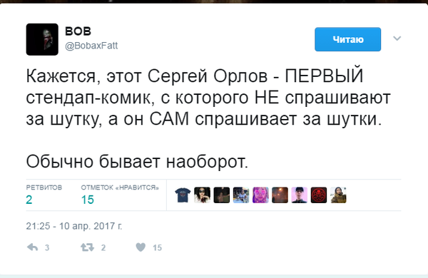 То есть сперва стендапер Сергей Орлов "пошутил" про "телок в стрингах" и получил довольно таки смешной ответ, НО это не понравилось Орлову.
