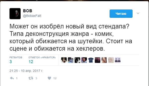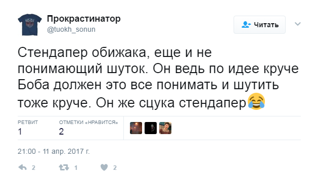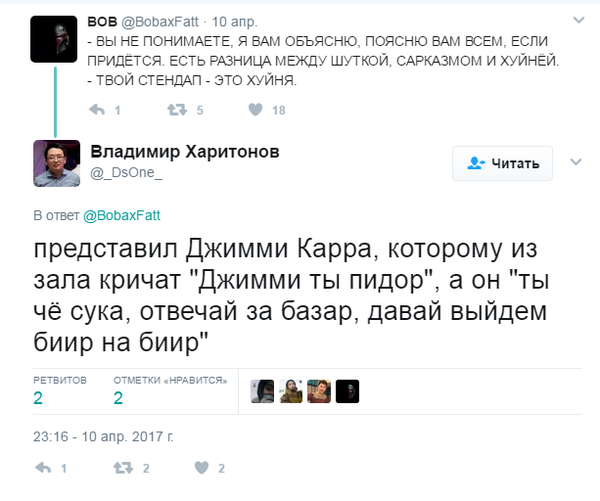 Своё непонимание ситуации выразил "юморист" и начал объяснять какие шутки смешные, а какие нет.