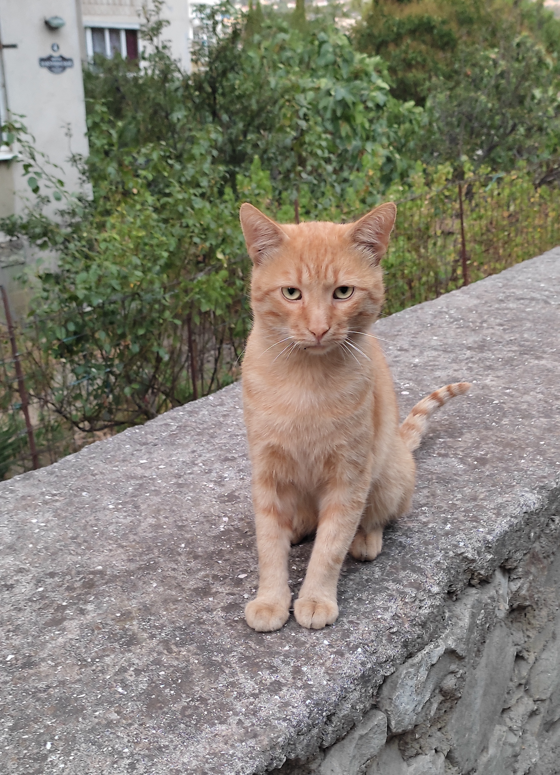14 dArkwillow Ялтинские коты 2 года назад Вот такой вот красавец. Ещё один рыжик. Помощник экскурсовода в Никитском ботаническом саду. Охранник в кафе на Ай-Петри. Говорят, даже лис гоняет. Прямо просит пузико почесать. Просыпаюсь ночью, а у меня на кровати котейка спит) Потом несколько раз и днём в гости заходила. [моё] Кот Ялта Мобильная фотография Длиннопост Ещё 0