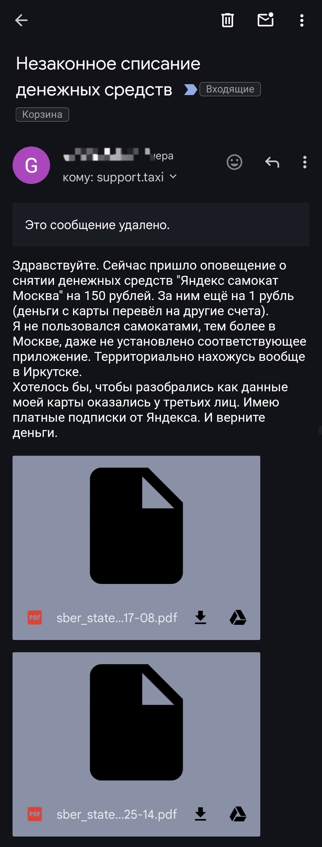 Но тут пришло уведомление о списании денег с карты за "Яндекс самокат Москва". Я вообще в Иркутске нахожусь. Какого хуя данные моей карты Яндекс слил кому-то и этот кто-то тупо моей картой оплачивает какую-то хуйню в столице?!..