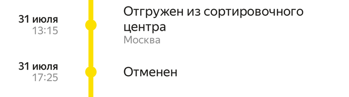 затем мы вместе с отправителем весело ждали когда брак вернется в родную гавань. хорошо что отправитель оказался порядочным продавцом (отзывы Авито не врут) и был всегда на связи, но после этого всего он никогда больше с Яндексом не свяжется