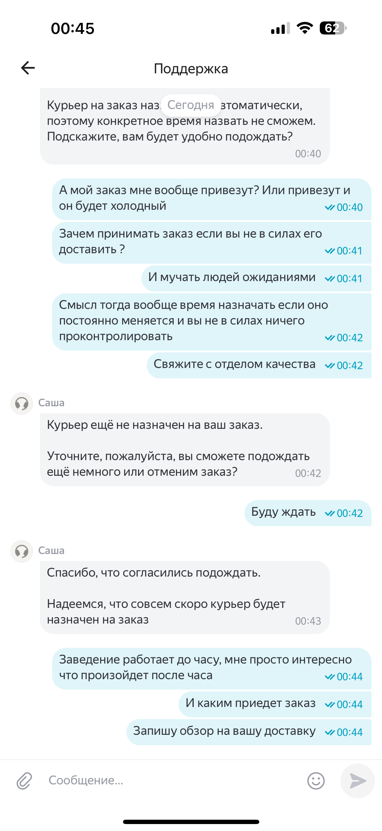 1 user11069702 Яндекс Еда 4 месяца назад Яндекс Еда Хочу оставить отзыв о доставке нашей любимой компании Яндекс еда, отвратительный сервис и обслуживание не какой помощи никого совета и содействия нет, желание заказывать что-то в этой конторке просто нет, ужас Яндекс Доставка Яндекс Длиннопост Ещё 0