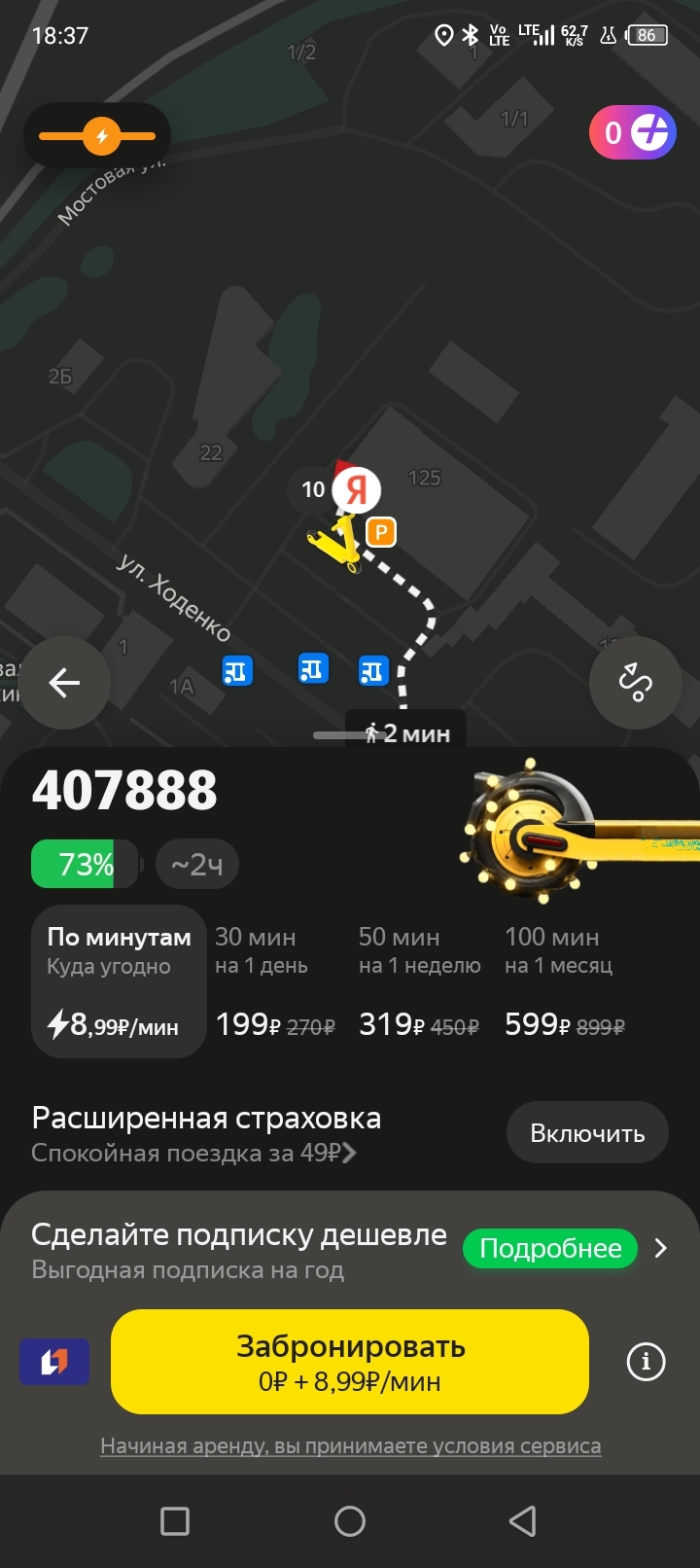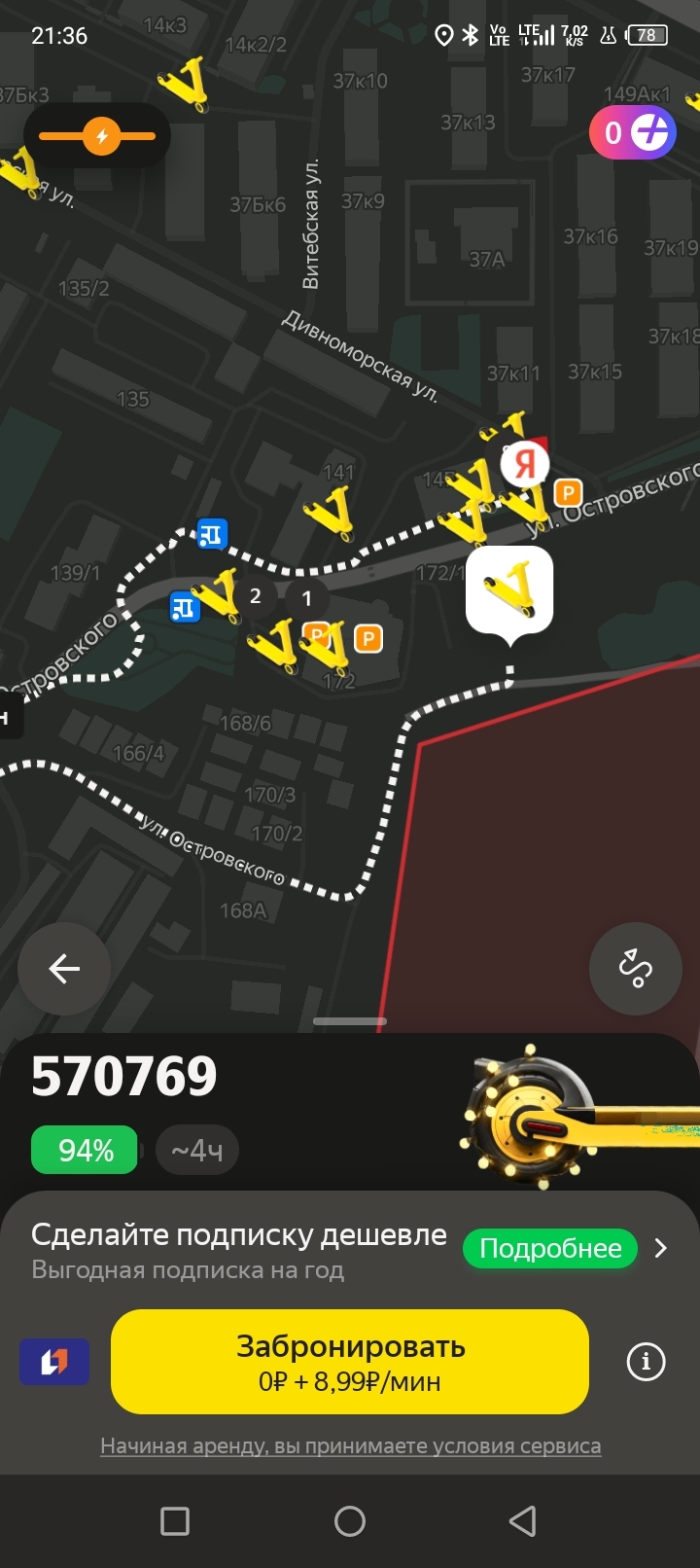 Постоянный гемор с навигацией, из-за этого самокат может замедлиться или вообще остановиться в самых неожиданных местах, недавно вообще был полный треш, мотор колесо на ходу заскрипело, на мониторе вылезла ошибка, "поддержка" минут 15-20 тянула прежде чем завершить аренду, видимо умышленно, чтобы побольше денег набежало! А приложение отказалось завершать, видите ли, тут парковки нет! По мнению Яндекса, я за свои бабки должен был катить самокат в руках?!