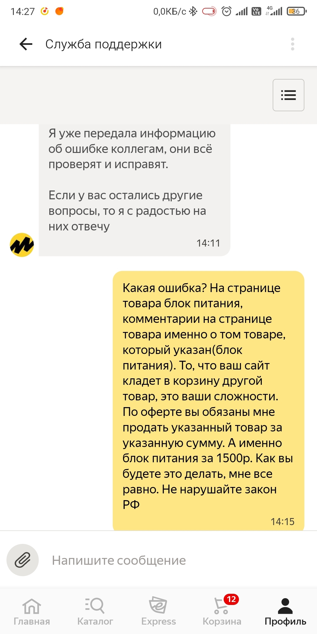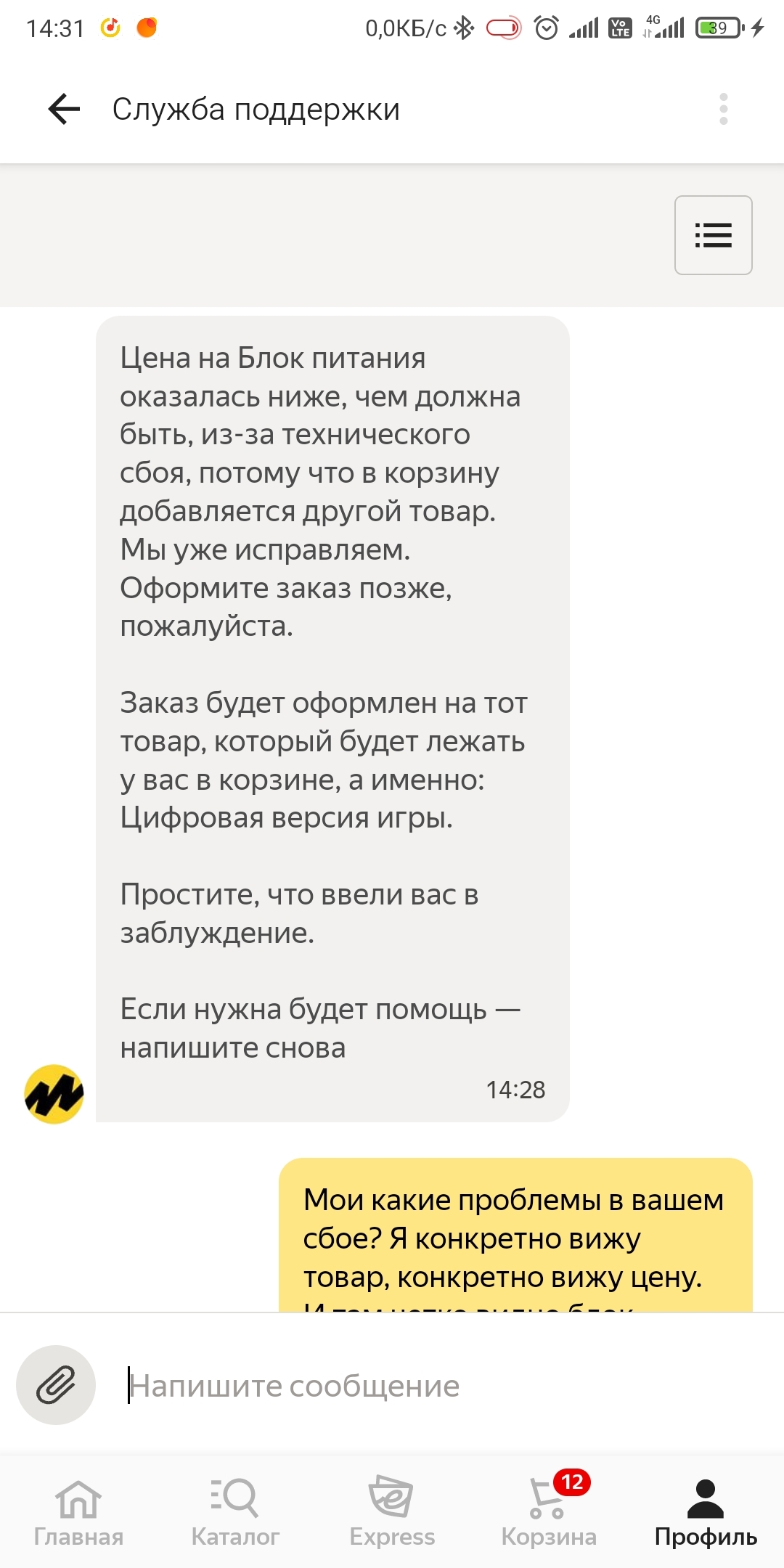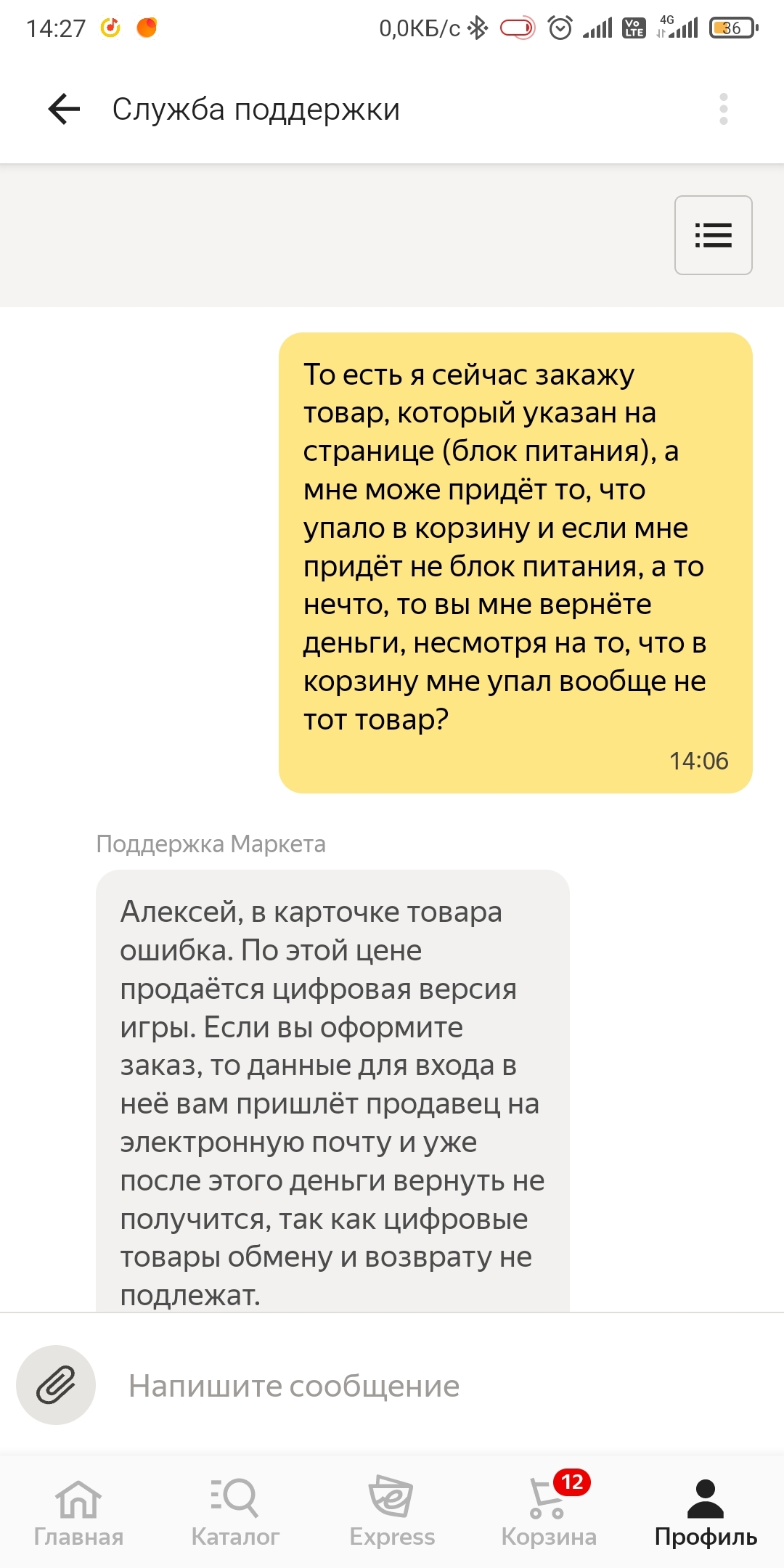 Падает какая-то цифровая копия игры... Ок. Перехожу на страницу товара и попадаю опять на блок питания. Открываю комментарии и там пишут только о блоке питания... Ну что ж. Раз яндекс сам мне предложил товар на 1500р, иду в техподдержку, чтобы они заменили мне товар на тот, который я заказывал, а не на тот, который им хочется. В итоге яндекс просто послал в пенек клиента. Еще и хитрожопые, это цифровая копия игры, за не тот товар ничего возвращать не будем. Мол не прокатило лошка развести, найдем другого