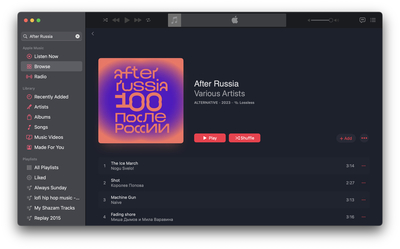 Между тем в Яндекс-музыке на главной странице появился плейлист с названием "после России", полностью составленный из песен музыкантов, осудивших текущую политику России и уехавших из страны.