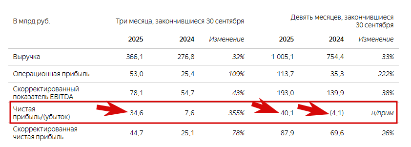 Заметил в фин. отчете Яндекса за 3 квартал, что чистая прибыль возросла на 355% в сравнении год к году. А если сравнивать первые девять месяцев по годам, то в 2024 вообще был убыток, причем из 9 месяцев 2025 года, 3 квартал дал прибыли 34,6 млн из 40,1 млн общих.