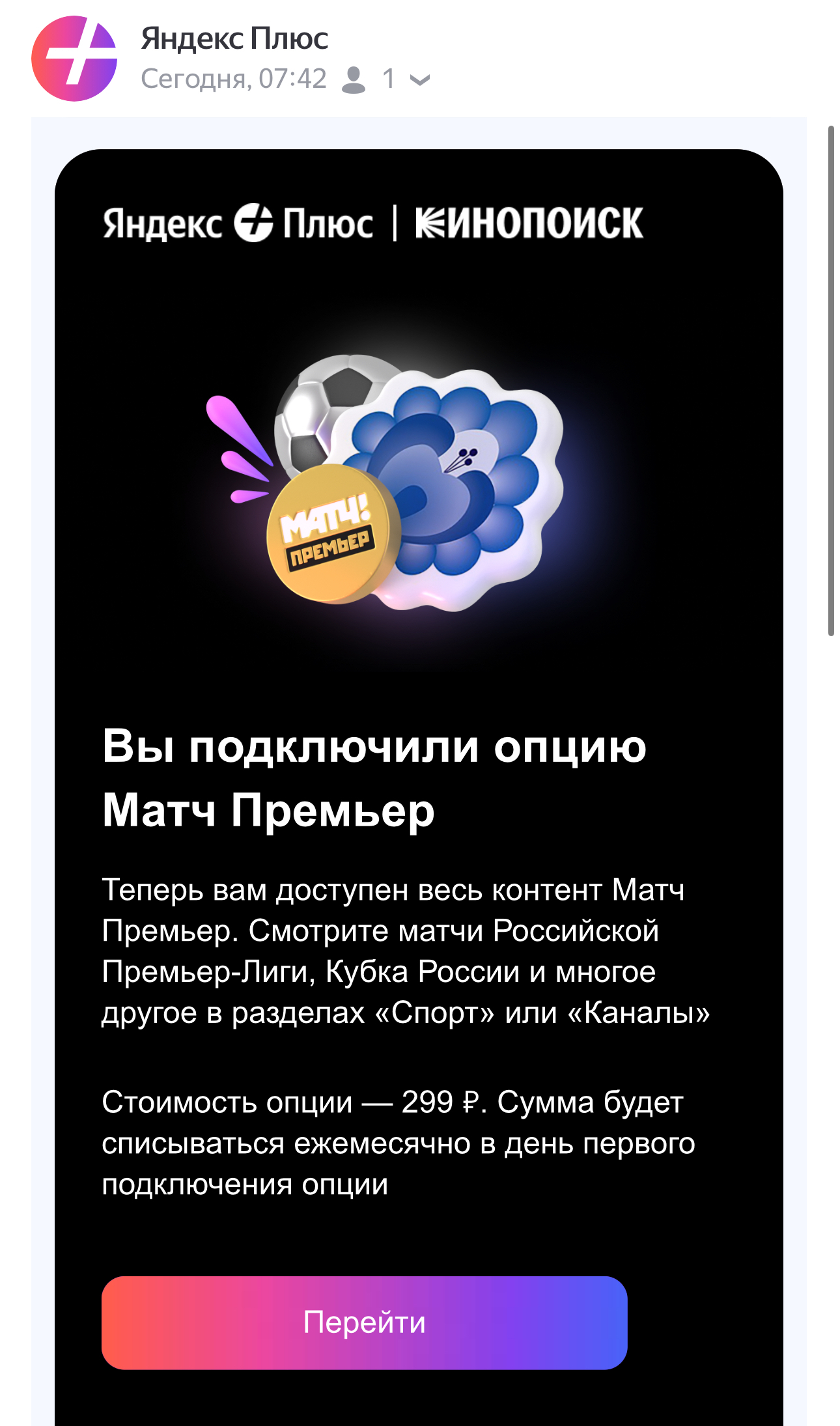 Сегодня утром, без каких-либо предложений и вопросов, Яндекс подключил меня на две платные подписки общей стоимостью 699 рублей ежемесячно. И к чему он меня подключил? К бесплатному федеральному телеканалу «Матч». Вернее, к их куче мусора, которую я и за $1 в месяц не смотрю в общем списке каналов IPTV.