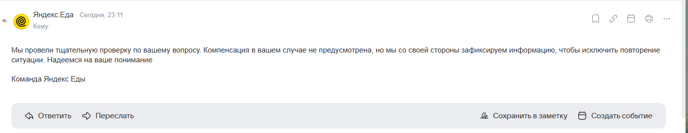 Написал в чат поддержки, попутно написал на эл.почту Яши. Все прикрепил, фото блюд, чеки и т.д. Что дальше? Думаю догадались "Пошел на*** а не возврат тебе".