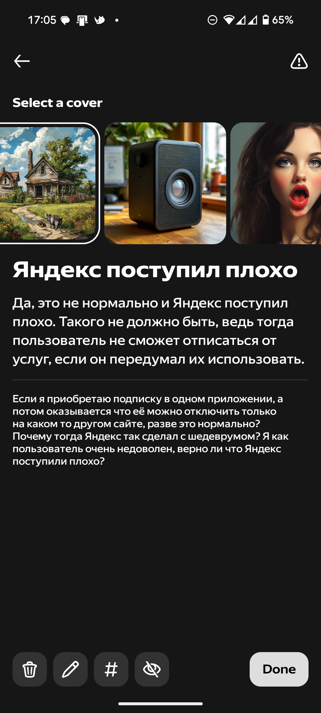 Из интереса даже шедевруму задал вопрос по этому поводу и не смотря на всю безумную цензуру он всё равно признал что Яндекс поступили плохо. (и видимо сгенерировал кого из Яндекса в качестве третьего варианта обложки)