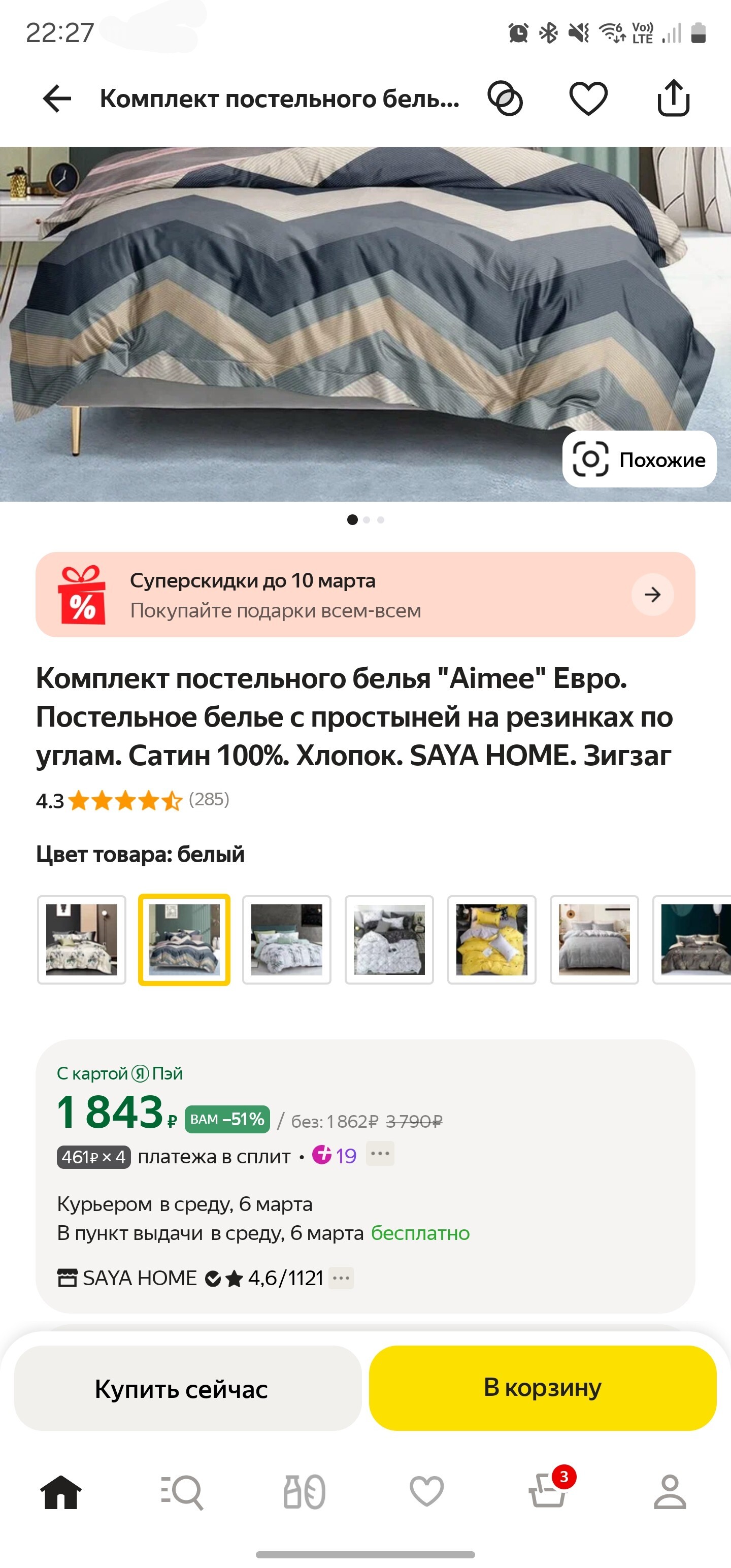 Не поверив своим глазам, она кидает ссылку на комплект белья мне, чтобы сравнить цены, потому что у меня любимые категории в принципе не выбраны. Результат: