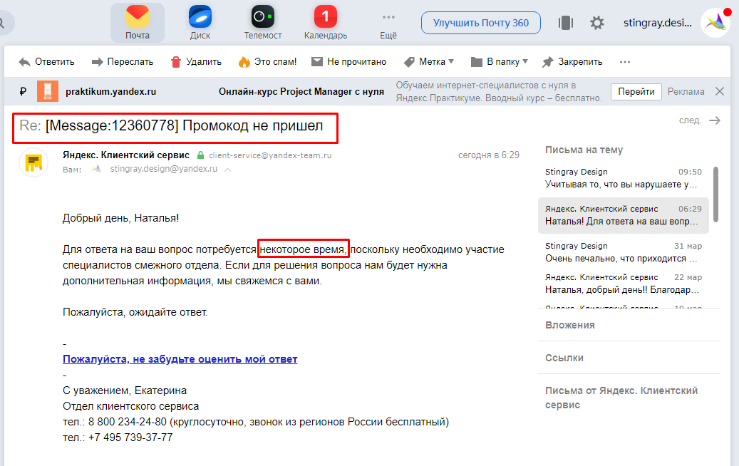 Посмотрю, что на этот раз мне напишет Клиентский сервис. Пошла за попкорном...