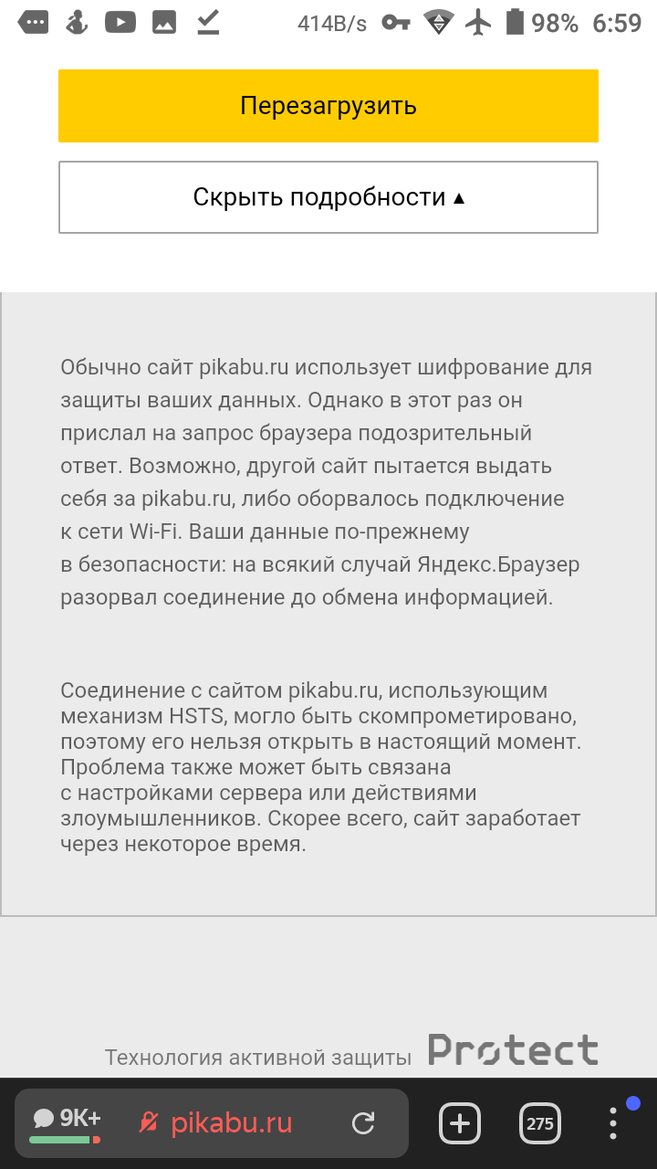 1 emma.lu Лига Яндекса Пикабу [ЛЯП] Яндекс всё хуже... В мобильной версии 10 месяцев назад Постоянно страница с предупреждением https нет защиты... и на много сайтов нет ссылки (пикабу тоже) на страницу из результатов поиска. Нахрена такой браузер, может я что то не понимаю? Как убрать то предупреждение (сменить поисковик?))) [моё] Негатив Яндекс Вопрос Спроси Пикабу Длиннопост Https 1 Ещё 0