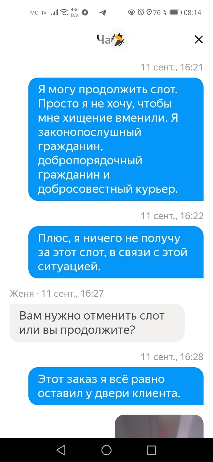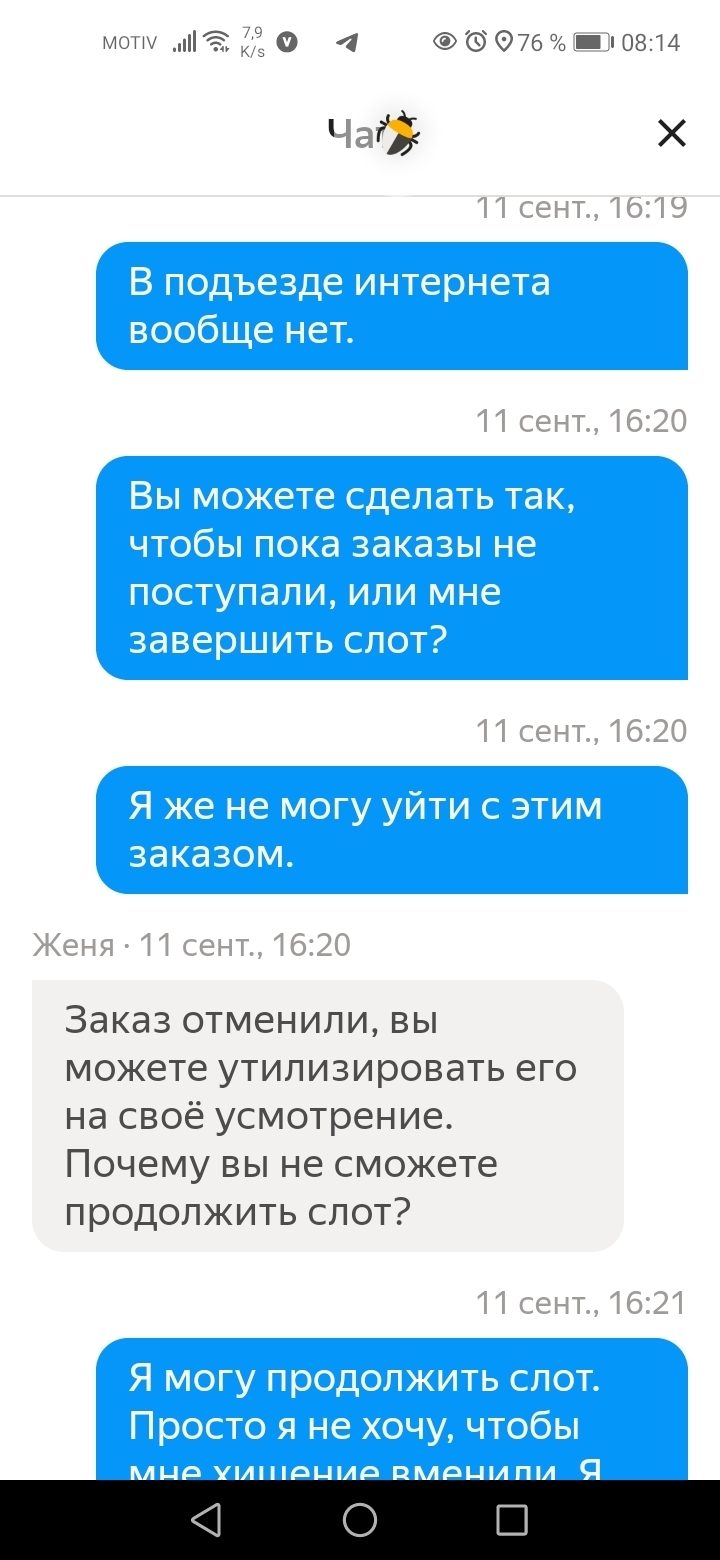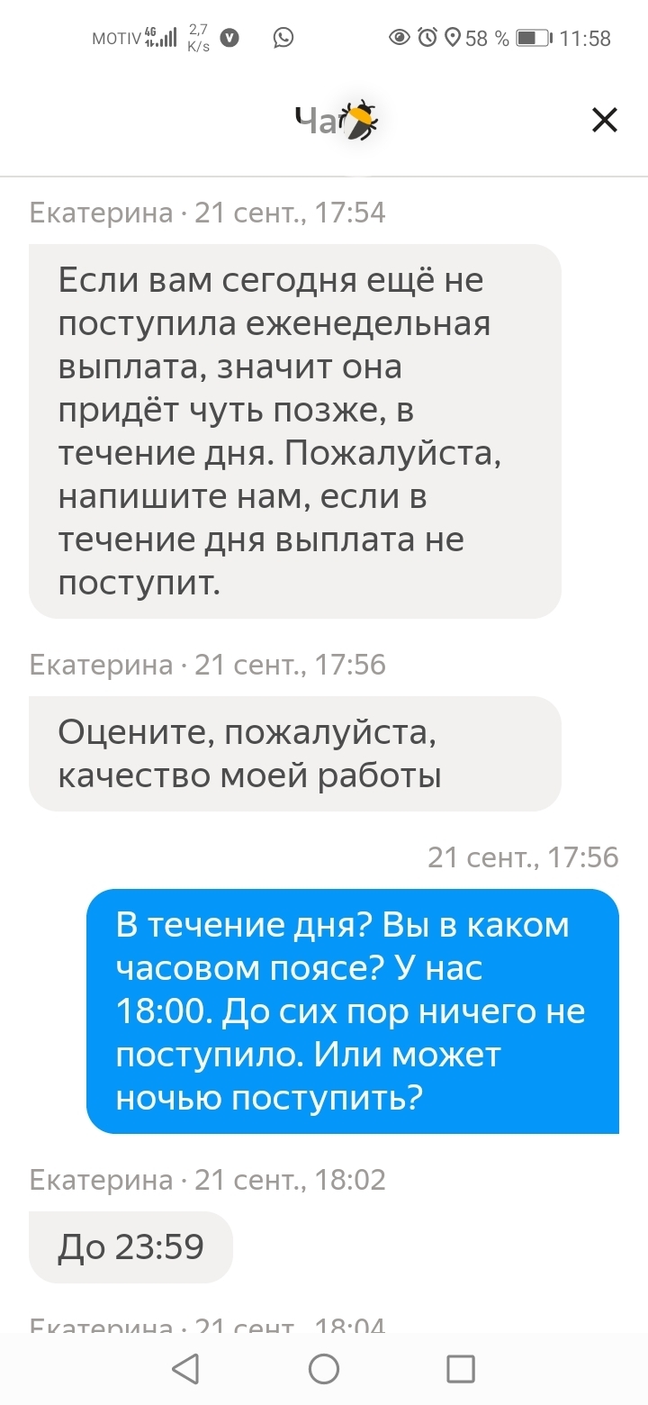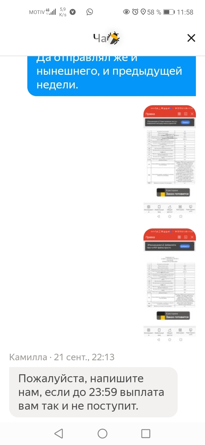 Приветствую, уважаемые пикабушники. Работаю пешим курьером в Яндекс.Еде почти год (в марте этого года доставил 300 заказов, сейчас не знаю сколько - вероятно, близок к 1000). Много что удивляло за это время, но тем, что там творится в последнее время, не могу не поделиться. Третью среду подряд мне не приходят еженедельные выплаты. На карту падают какие-то непонятные суммы. Возьмём заработок за последние слоты. Так, например, за слот от 14.09.2022, согласно отчёту, я заработал 1219 рублей, по факту же получил всего 616,77 рублей. За слоты от 16 и 18.09.2022, согласно отчётам, я суммарно заработал 2555 (1070+255+1230) рублей, но получил всего 1149,39. За слот от 19.09.2022, согласно отчёту, я заработал 1242 рубля, но пришло мне всего 571,23. За слот от 20.09.2022, согласно отчёту, я заработал 1540 рублей, а на карту упало всего 410,85. 21.09.2022 была среда, и поддержка заверяла, что еженедельная выплата поступит "в течение дня", до 23:59. Однако, ничего так и не пришло, и всё, что я получил в среду, составило всего 410,85 рублей. И это лишь примеры последних рабочих дней. Две последних недели обстоят точно так же. В предыдущую среду я получил всего 531,63 рублей. Но странности на этом не заканчиваются. Я работал добросовестно, нарушений не допускал (к сожалению, остался отчёт по качеству доставок лишь на 7 июня, все более ранние из приложения удалились), строго следуя всем стандартам сервиса. Однако, 1 июля что-то резко пошло не так. Делая всё точно так же, каким-то неведомым образом я выхватил сразу 55 нарушений, минус 2 сердечка и ограничение доступа на 2 дня. В этот же день одно сердечко восстановили и снова убрали. 9 июля восстановили все сердечки, но приложение и до настоящего времени продолжает мне накручивать нарушения "часто задерживался у клиента", несмотря на то, что каждый раз, отдав заказ, пожелав приятного аппетита и попрощавшись с клиентом, я немедленно убегаю на следующий заказ. 12 сентября отчёт содержал уже что-то новенькое: оказывается, я подменял на слоте данные о геолокации, хотя понятия не имею, что это вообще такое и для чего это может понадобиться. Далее оказалось, что клиент дважды не получил заказ. А дело было так. 11 сентября, когда я прибыл к клиенту, в приложении случился какой-то сбой со статусом, заказ завершился автоматически, и следующие начали поступать один за другим. Я не принял ни одного, кое-как взял паузу и начал написывать в поддержку, чтобы решить проблему с этим заказом. Узнав адрес клиента, я поднялся, стучал и звонил в дверь, чтобы отдать заказ, но никто не открыл. В подъезде не ловил интернет, я спустился на улицу и вновь написал в поддержку. Поддержка связалась с клиентом и заказ отменили, но, зная, какие дивные случаи бывают в Яндекс.Еде, от греха подальше я поднялся ещё раз и оставил заказ у двери клиента. Но мне всё равно впаяли нарушение, причём, умноженное на 2, хотя я мог вообще забить и никуда не писать - клиент в любом случае не забрал бы заказ, так как его не было дома. Если бы я не проявил сознательность и элементарную человеческую порядочность, то, очевидно, поддержка вообще бы об этом происшествии не узнала. А ещё приложение временами прикручивает множественные несуществующие опоздания на нереальное время - по 10-15 минут. Доказательств того, что я не опаздывал, у меня нет, поскольку скринить заказы, на которых остаётся приличный запас по таймеру, как я думал, не имеет смысла. Но это так, к