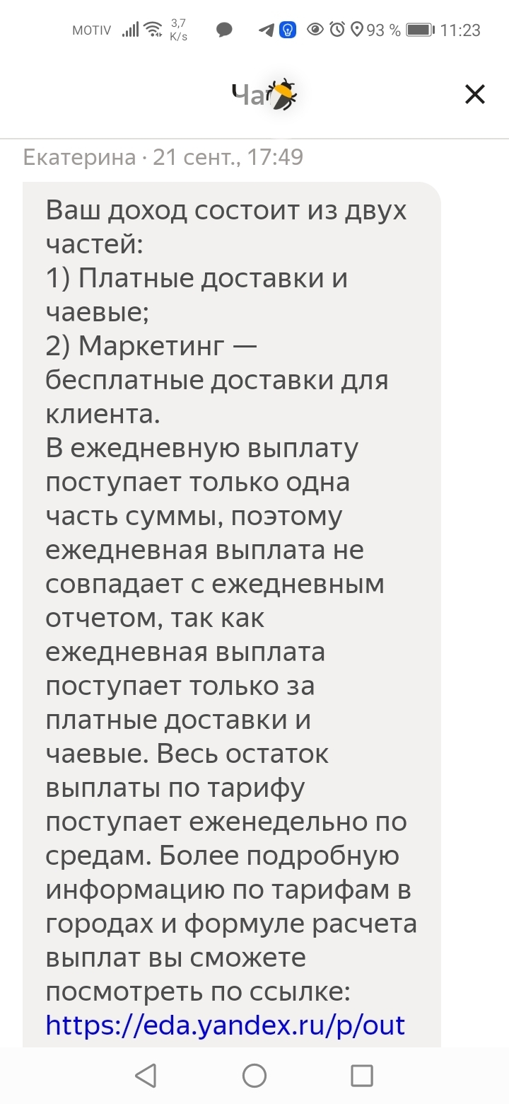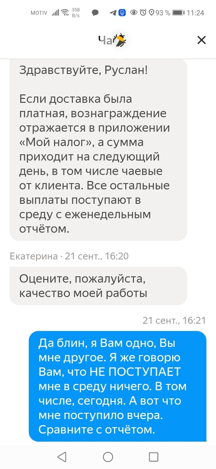 Приветствую, уважаемые пикабушники. Работаю пешим курьером в Яндекс.Еде почти год (в марте этого года доставил 300 заказов, сейчас не знаю сколько - вероятно, близок к 1000). Много что удивляло за это время, но тем, что там творится в последнее время, не могу не поделиться. Третью среду подряд мне не приходят еженедельные выплаты. На карту падают какие-то непонятные суммы. Возьмём заработок за последние слоты. Так, например, за слот от 14.09.2022, согласно отчёту, я заработал 1219 рублей, по факту же получил всего 616,77 рублей. За слоты от 16 и 18.09.2022, согласно отчётам, я суммарно заработал 2555 (1070+255+1230) рублей, но получил всего 1149,39. За слот от 19.09.2022, согласно отчёту, я заработал 1242 рубля, но пришло мне всего 571,23. За слот от 20.09.2022, согласно отчёту, я заработал 1540 рублей, а на карту упало всего 410,85. 21.09.2022 была среда, и поддержка заверяла, что еженедельная выплата поступит "в течение дня", до 23:59. Однако, ничего так и не пришло, и всё, что я получил в среду, составило всего 410,85 рублей. И это лишь примеры последних рабочих дней. Две последних недели обстоят точно так же. В предыдущую среду я получил всего 531,63 рублей. Но странности на этом не заканчиваются. Я работал добросовестно, нарушений не допускал (к сожалению, остался отчёт по качеству доставок лишь на 7 июня, все более ранние из приложения удалились), строго следуя всем стандартам сервиса. Однако, 1 июля что-то резко пошло не так. Делая всё точно так же, каким-то неведомым образом я выхватил сразу 55 нарушений, минус 2 сердечка и ограничение доступа на 2 дня. В этот же день одно сердечко восстановили и снова убрали. 9 июля восстановили все сердечки, но приложение и до настоящего времени продолжает мне накручивать нарушения "часто задерживался у клиента", несмотря на то, что каждый раз, отдав заказ, пожелав приятного аппетита и попрощавшись с клиентом, я немедленно убегаю на следующий заказ. 12 сентября отчёт содержал уже что-то новенькое: оказывается, я подменял на слоте данные о геолокации, хотя понятия не имею, что это вообще такое и для чего это может понадобиться. Далее оказалось, что клиент дважды не получил заказ. А дело было так. 11 сентября, когда я прибыл к клиенту, в приложении случился какой-то сбой со статусом, заказ завершился автоматически, и следующие начали поступать один за другим. Я не принял ни одного, кое-как взял паузу и начал написывать в поддержку, чтобы решить проблему с этим заказом. Узнав адрес клиента, я поднялся, стучал и звонил в дверь, чтобы отдать заказ, но никто не открыл. В подъезде не ловил интернет, я спустился на улицу и вновь написал в поддержку. Поддержка связалась с клиентом и заказ отменили, но, зная, какие дивные случаи бывают в Яндекс.Еде, от греха подальше я поднялся ещё раз и оставил заказ у двери клиента. Но мне всё равно впаяли нарушение, причём, умноженное на 2, хотя я мог вообще забить и никуда не писать - клиент в любом случае не забрал бы заказ, так как его не было дома. Если бы я не проявил сознательность и элементарную человеческую порядочность, то, очевидно, поддержка вообще бы об этом происшествии не узнала. А ещё приложение временами прикручивает множественные несуществующие опоздания на нереальное время - по 10-15 минут. Доказательств того, что я не опаздывал, у меня нет, поскольку скринить заказы, на которых остаётся приличный запас по таймеру, как я думал, не имеет смысла. Но это так, к