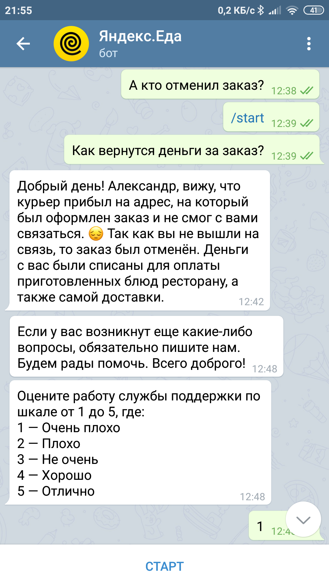 Звоню на горячую линию с вопросом, што за нах? Где моя еда и почему отмена была без визита в офис?
