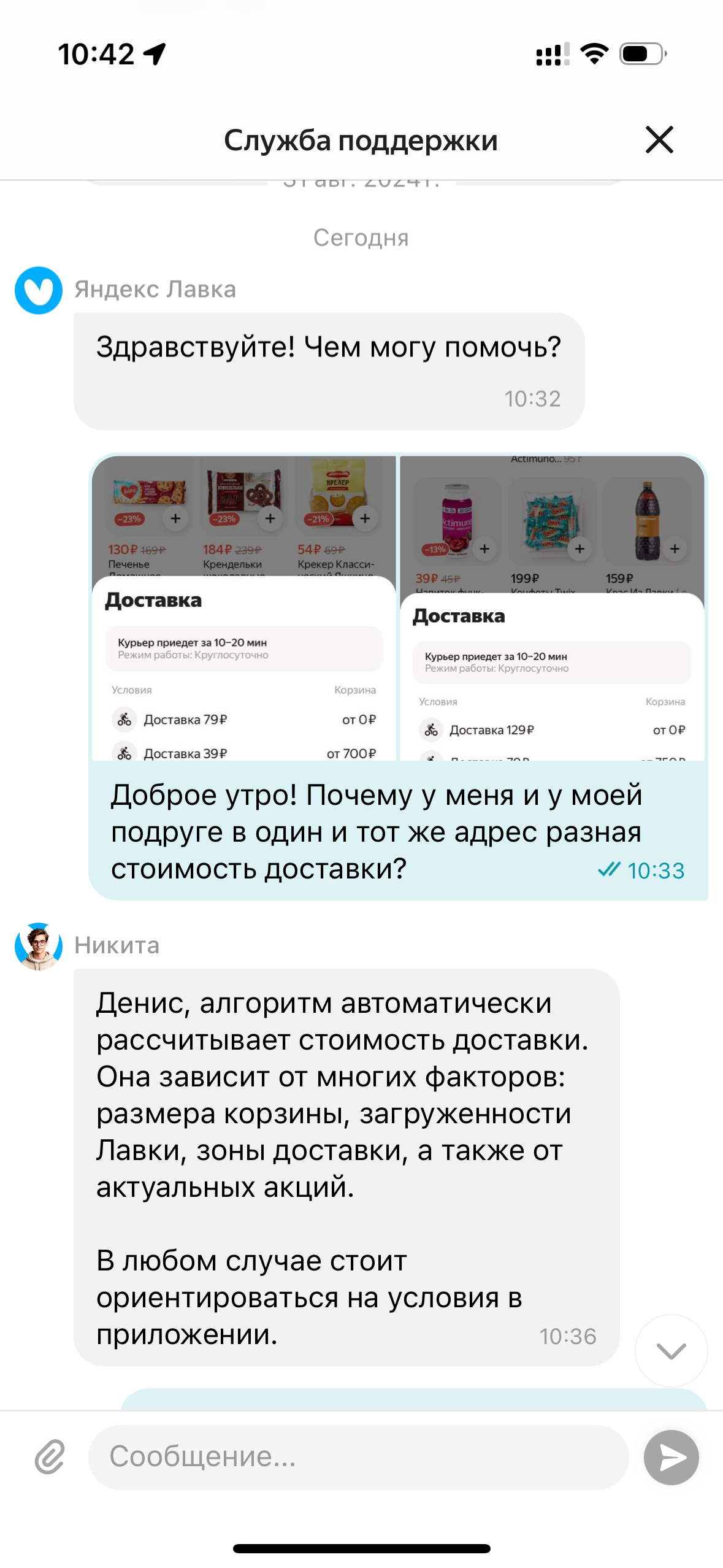 Обсуждали с подругой заказ доставки на завтрак, речь зашла о Яндекс.Лавке и стоимости доставки, я пожаловался, что у меня всегда 119-129, и заказывать лишний раз не хочется, а она говорит, у меня либо бесплатная, либо 79.