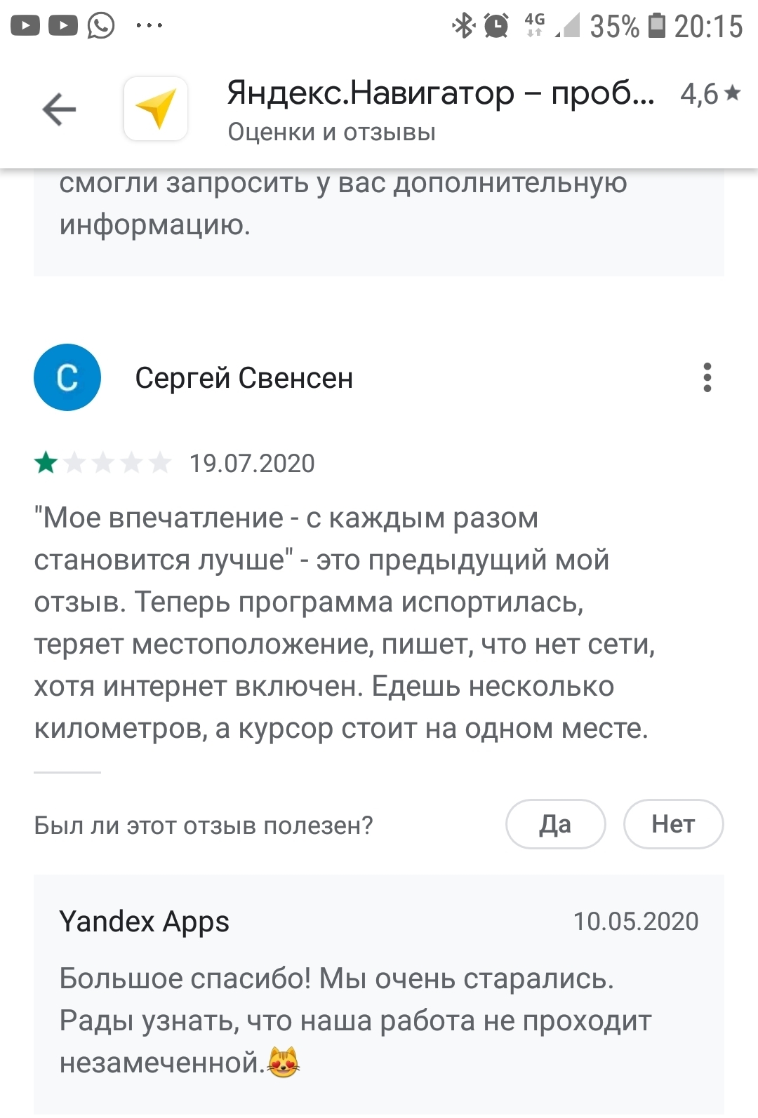 1 SeryjNablyudatel Яндекс.Навигатор заботится о своих пользователях 5 лет назад [моё] Яндекс Навигатор Комментарии Служба поддержки Отзыв Ещё 0