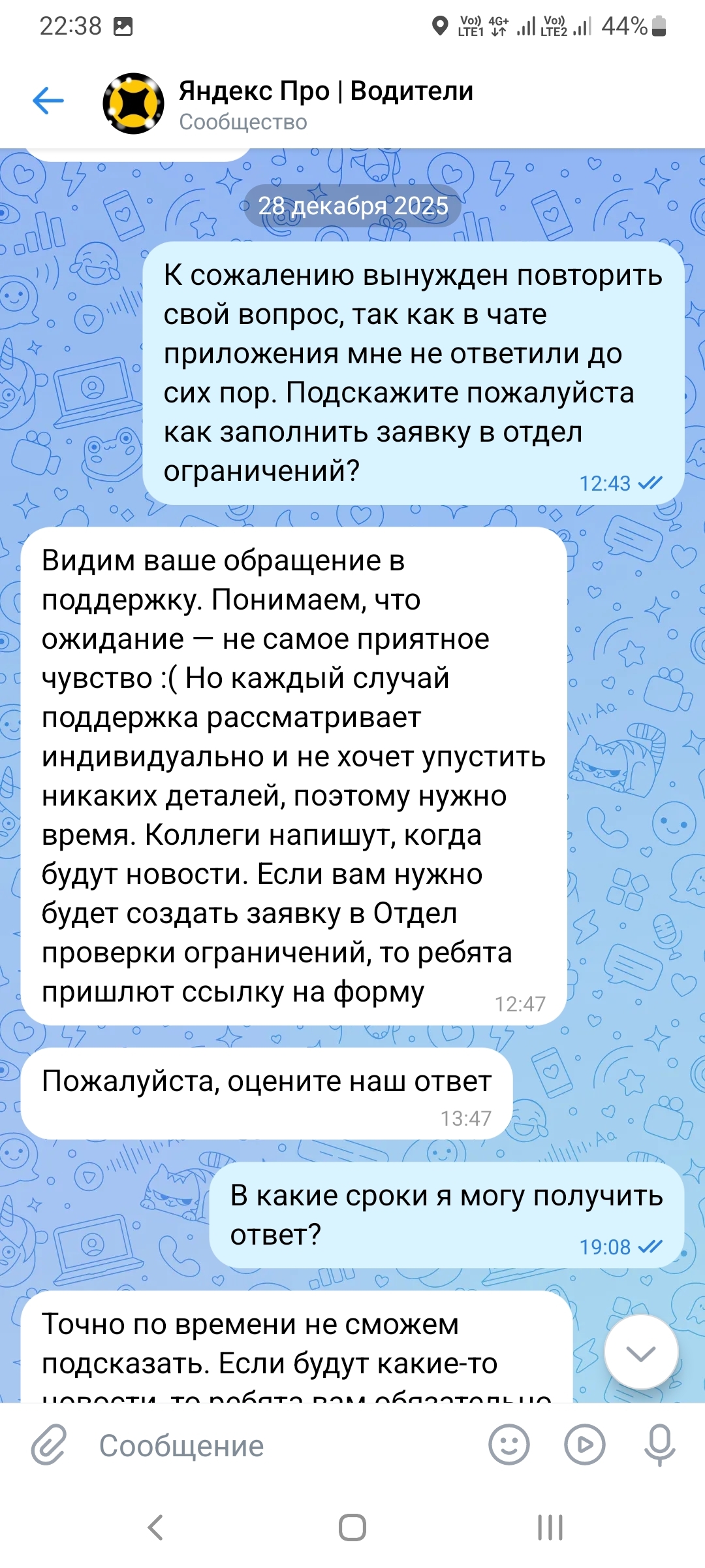 Таким образом прошло десять дней, последний раз я написал в поддержку 28 декабря 2025 года