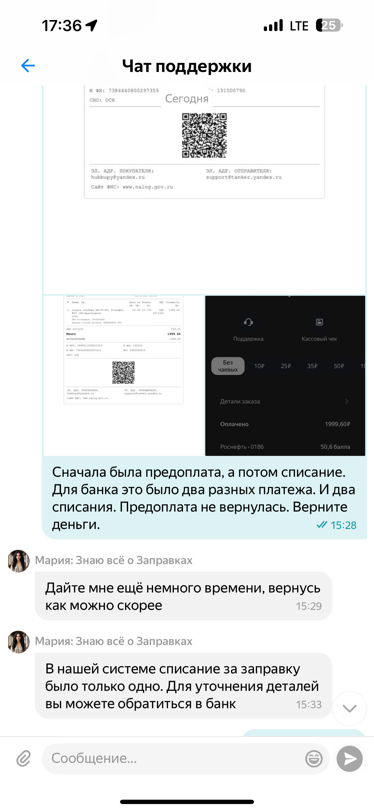 Яндекс.заправки списал два раза деньги, но считает за один