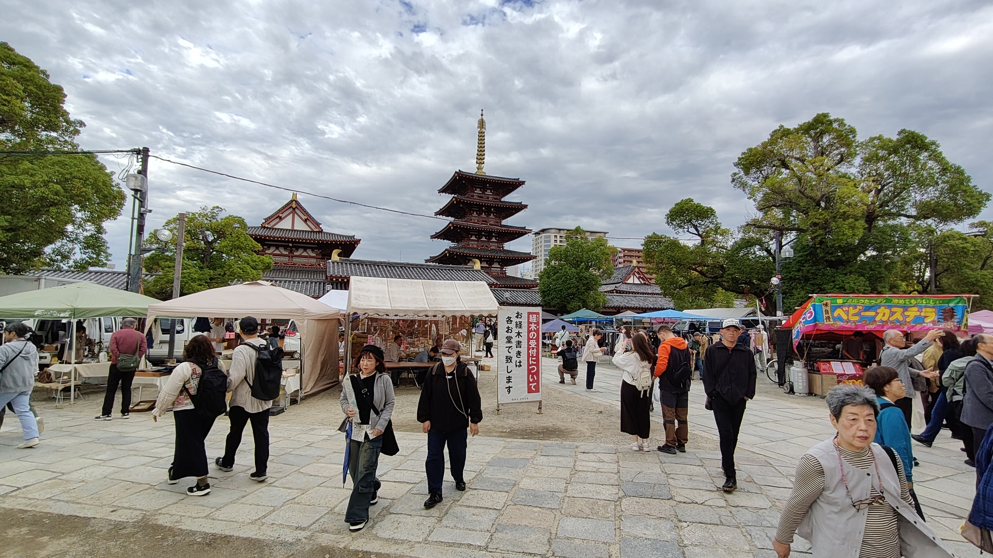Народу было много хотя я и пришёл почти под закрытие. Храм один из центровых в Осаке.