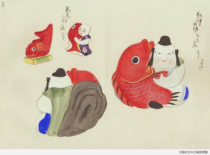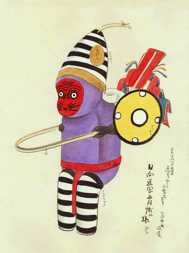 Японский художник Кавасаки (1877-1942) рисовал японские игрушки и предметы созданные национальными ремесленниками. За свою жизнь он запечатлел более 5000 игрушек, талисманов - нэко (символов приносящих удачу).