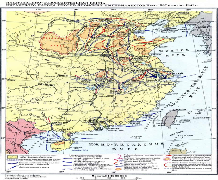 К концу 1937 года японская армия, развернувшая шесть армий, захватила ключевые пункты в пяти северных провинциях Китая, понеся потери около 70 тысяч человек. Несмотря на существование Антикоминтерновского пакта, германский империализм продолжал поддерживать реакционный режим Чан Кайши, поставляя ему оружие и направляя военных советников. Однако усиление международной изоляции агрессора привело к провалу германских попыток посредничества в конфликте. Провокационные действия японских милитаристов 12 декабря 1937 года – потопление американской канонерки «Панай» и обстрел британского корабля «Лэдиберд» – едва не втянули США и Великобританию в войну, но в итоге инциденты были замолчены дипломатическим путем. Война в Китае принимала затяжной характер, вопреки ожиданиям японского командования. Милитаристские круги Японии, отражая интересы крупного капитала и помещиков, настаивали на дальнейшей экспансии и категорически отвергали переговоры с гоминьдановским правительством Чан Кайши. В январе 1938 года Япония окончательно прервала контакты, а Китай отозвал своих дипломатов из Токио. Февраль 1938 года ознаменовался принятием в Японии реакционного закона «О всеобщей мобилизации нации», устанавливавшего режим военного времени и подчинявшего всю жизнь страны интересам агрессии. К весне 1938 года внутриполитический кризис в Японии привел к реорганизации правительства. В него вошли как представители так называемых «умеренных», вынужденно говоривших о возможных переговорах под давлением трудящихся масс и экономических трудностей, так и откровенные «активисты» из числа наиболее агрессивных милитаристов, требовавших неограниченного продолжения захватнической войны. В октябре 1938 года японским войскам удалось захватить важные центры – Кантон и Ухань. Это временное военное преимущество подтолкнуло правящие круги Токио к разработке планов создания марионеточного «национального» правительства в оккупированном Китае, призванного ослабить волю китайского народа к сопротивлению. В декабре 1938 года нашла своего предателя в лице Ван Цзинвэя, бывшего соратника Чан Кайши, объявившего о готовности сотрудничать с оккупантами против интересов китайской нации. С самого развязывания агрессии японский империализм начал форсированную милитаризацию экономики. Были введены драконовские законы, ограничивающие внешнюю торговлю, устанавливающие жесткий контроль над денежными фондами и направленные на тотальную мобилизацию промышленности для нужд войны. К 1940 году контроль распространился на заработную плату трудящихся, потребление риса, использование земли и других стратегических ресурсов, что означало дальнейшее усиление эксплуатации японского народа и ограбление колоний. Эти меры, проведенные в интересах монополий и военщины, обеспечили Японии лишь временную и неустойчивую экономическую базу для вступления во Вторую мировую войну, которая в конечном итоге оказалась совершенно недостаточной для противостояния объединенной мощи СССР, США и Великобритании.