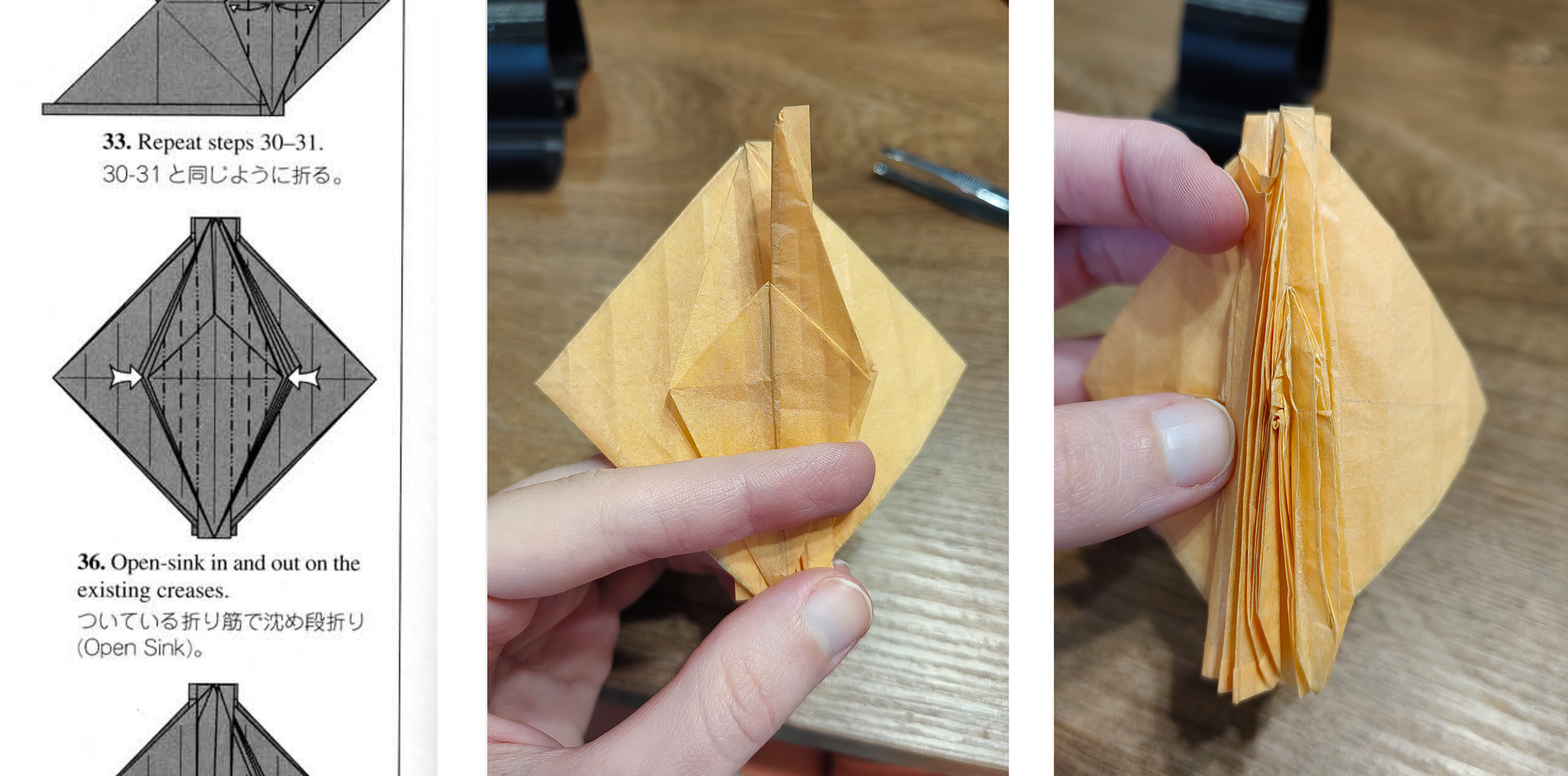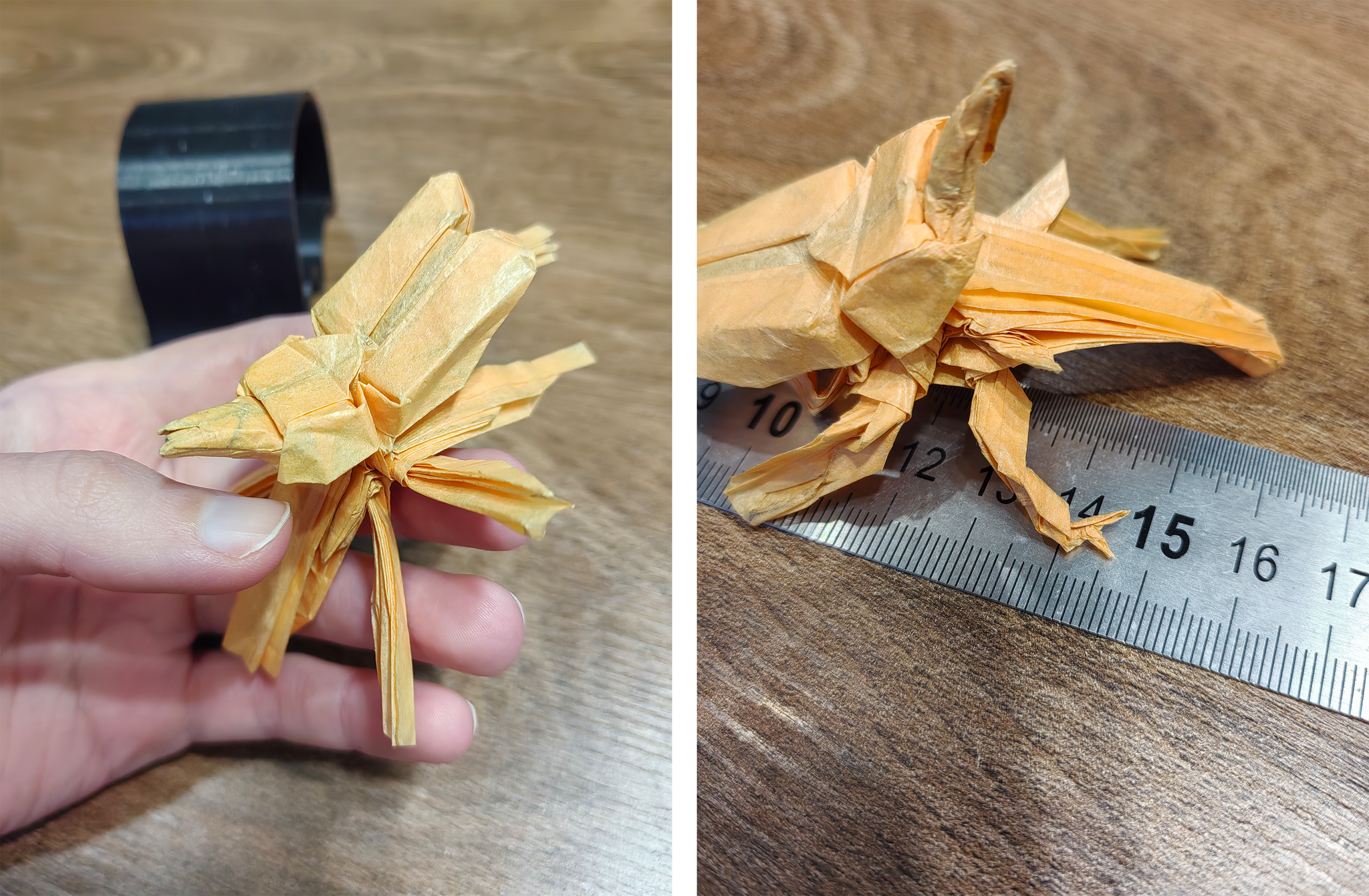 Имелся уже готовый квадрат бумаги Canson Silk 20г/м2 и книга с насекомыми. Имея небольшой опыт складывания букашек, да еще из такой бумаги, я бесстрашно пошла складывать приглянувшегося, и где-то еще в самом начале поняла, что, возможно, слегка поторопилась х) Но глаза боятся, руки делают. Я рада, что получилось довести его до конца. Далеко не идеален, но какой есть)