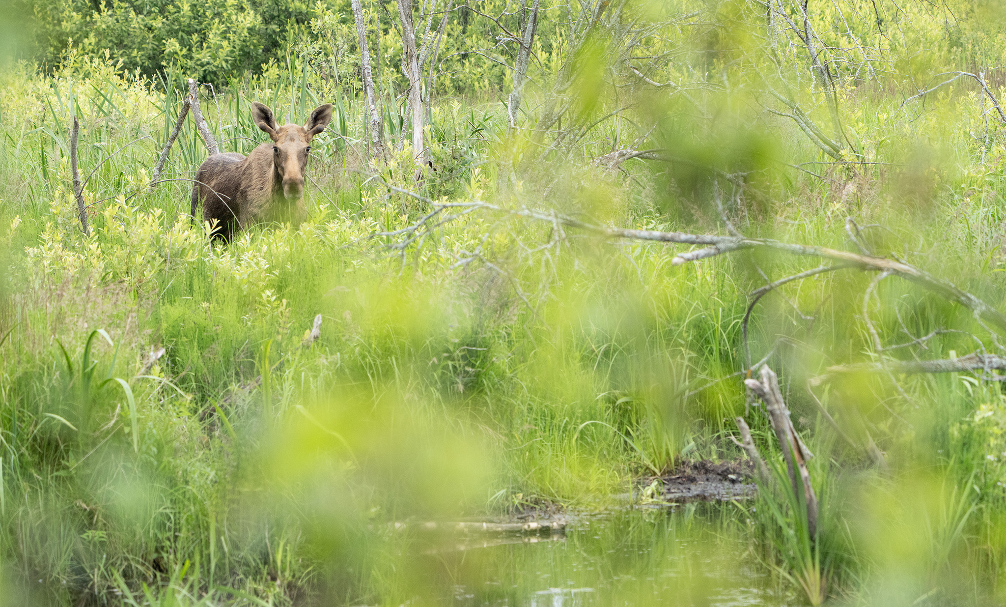 Молодой лось из Ярославской области. Удалось довольно близко к нему подобраться (первое фото это полный кадр на 600 мм) благодаря тому, что ветер дул на меня.