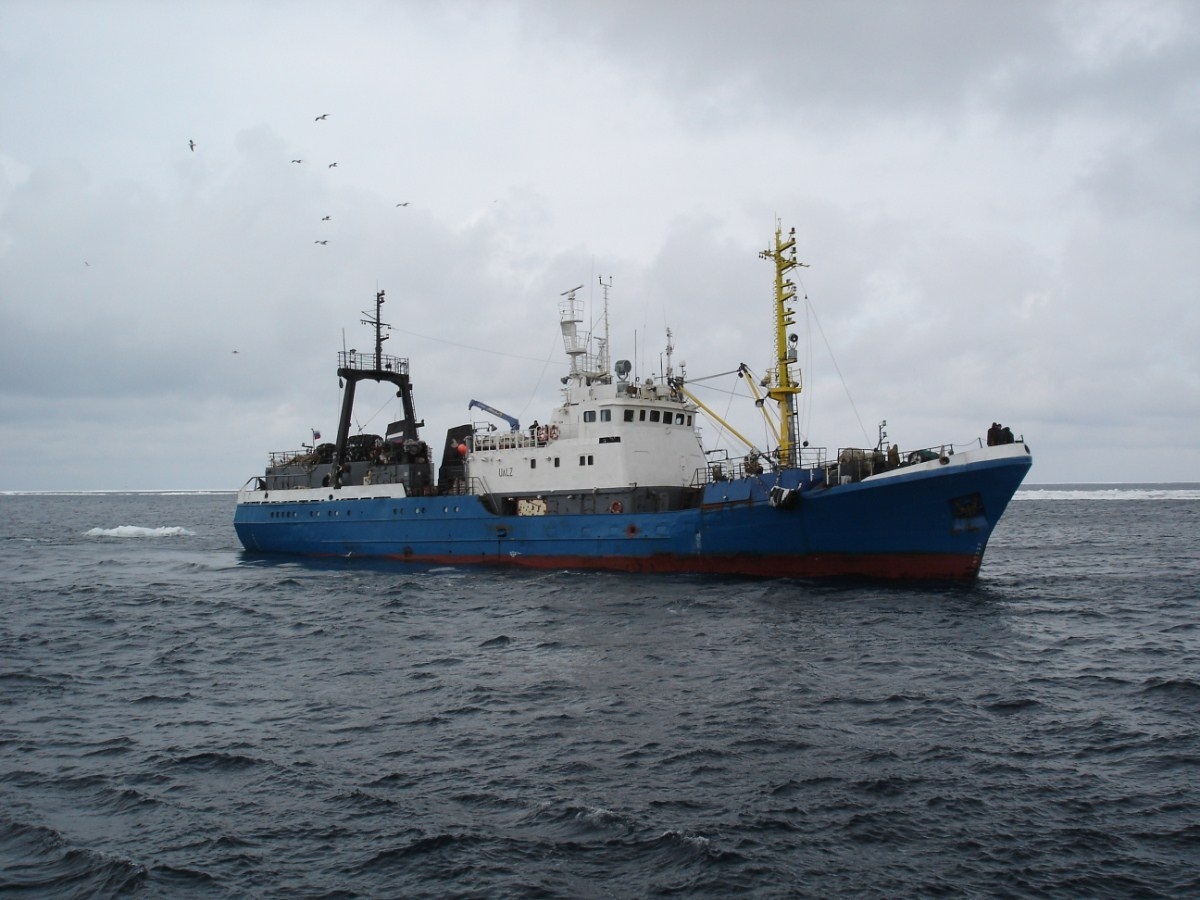 Итак ярусолов как уже писал обычно это судно не более 60 метров длиной. Оборудованое системой ярусного лова (лова крючковой снастью) на фото ниже сртм-к переделанный под ярусный лов