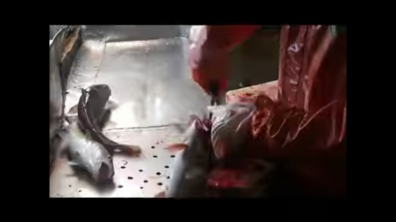 Как видим в руке у трала маленький богор им он подцепляет каждую рыбу не давая сорваться обязательно протыкать в голову тушку рыбы коцать нельзя. Проткнутая рыба выкидывается как и мертвая когда приходит с крючка. честно сказать если рыбы идёт много мышцы офигивают. Второй человек матрос стоит с длинным багром. Его работа поймать ту рыбу которая сорвалась с крючка и упала в море а так же калтычить пойманную рыбу (калтычить это значит перерезать калтык) и отправлять ее в накопительный бункер. фото ниже.
