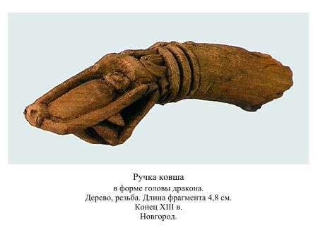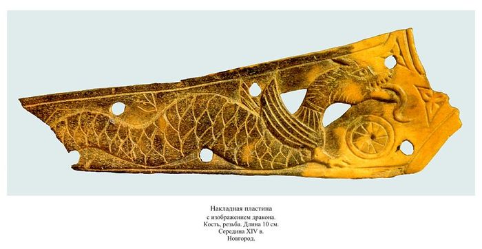 Далее посмотрим на Новгородские резные изделия, изображающие дракона. Разумеется это только малая их часть. Подобных украшений, предметов утвари или элементов архитектуры, изображающих ящеров либо драконов, в древнем Новгороде было огромное множество.