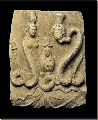 А это бог Серапис с богиней Исидой, и, видимо, плод их любви. Серапис, вообще, бог неординарный, ему поклонялись и эллины, и египтяне, и римляне, и вавилоняне. Пожалуй, трудно отыскать в древних пантеонах другого столь же популярного у разных народов персонажа.